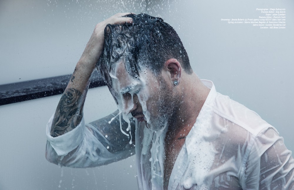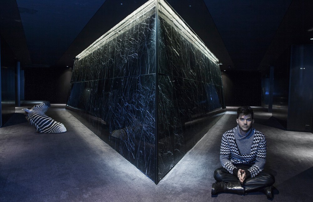 Singer Adam Lambert stars in a quirky Schön! photo shoot lensed by fashion photographer Diego Indraccolo. Embracing a wardrobe inspired by the stripes of a zebra, Lambert is styled by Kay Korsh. Posing for a surreal series of images, Lambert is pictured in a tailored wardrobe that includes pieces from brands like Tiger of Sweden, Bally and Christian Louboutin.