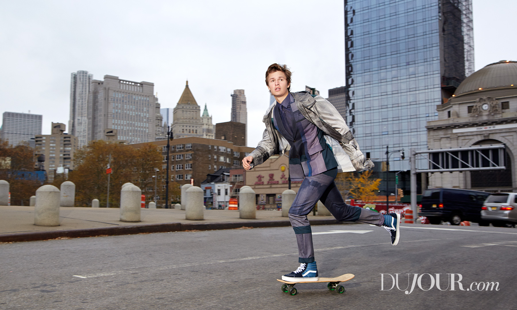 The artistic gene is strong in the Elgort family. Allegiant actor Ansel Elgort is photographed by his sister Sophie Elgort for the latest issue of DuJour magazine. Taking to the streets of New York, Elgort is captured in an eclectic wardrobe, styled by Paul Frederick. Embracing tailoring with character, the 22 year-old actor is pictured in brands such as Brioni and Issey Miyake.