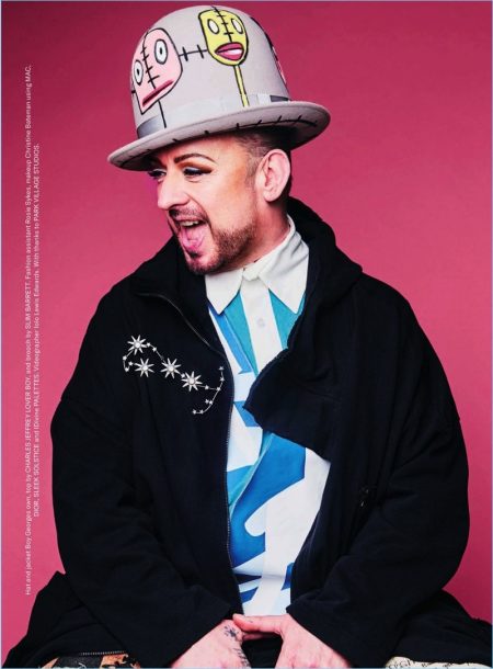 Boy George returns to the pages of Gay Times. The occasion marks the 30th anniversary of the artist’s first Gay Times cover. Photographer Bartek Szmigulski has the privilege of connecting with George. Meanwhile, stylist Kamran Rajput adds eccentric pieces to the singer’s already colorful wardrobe. Taking its feature to the next level, the magazine recruit Adam Lambert to interview George.