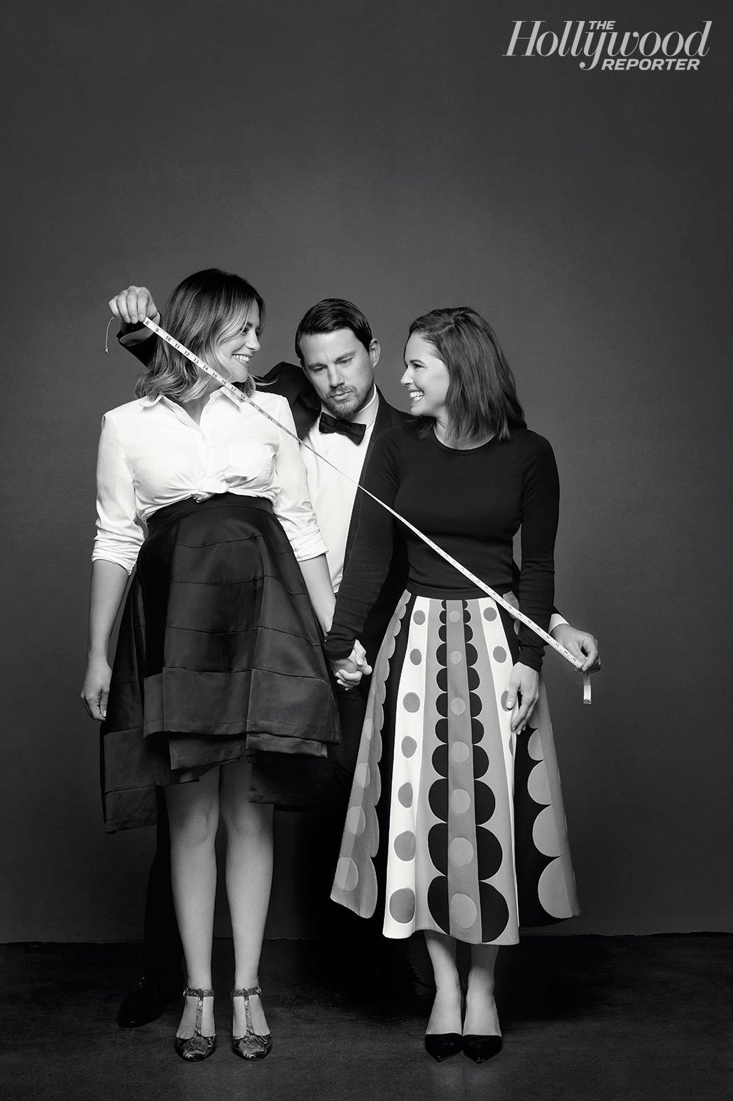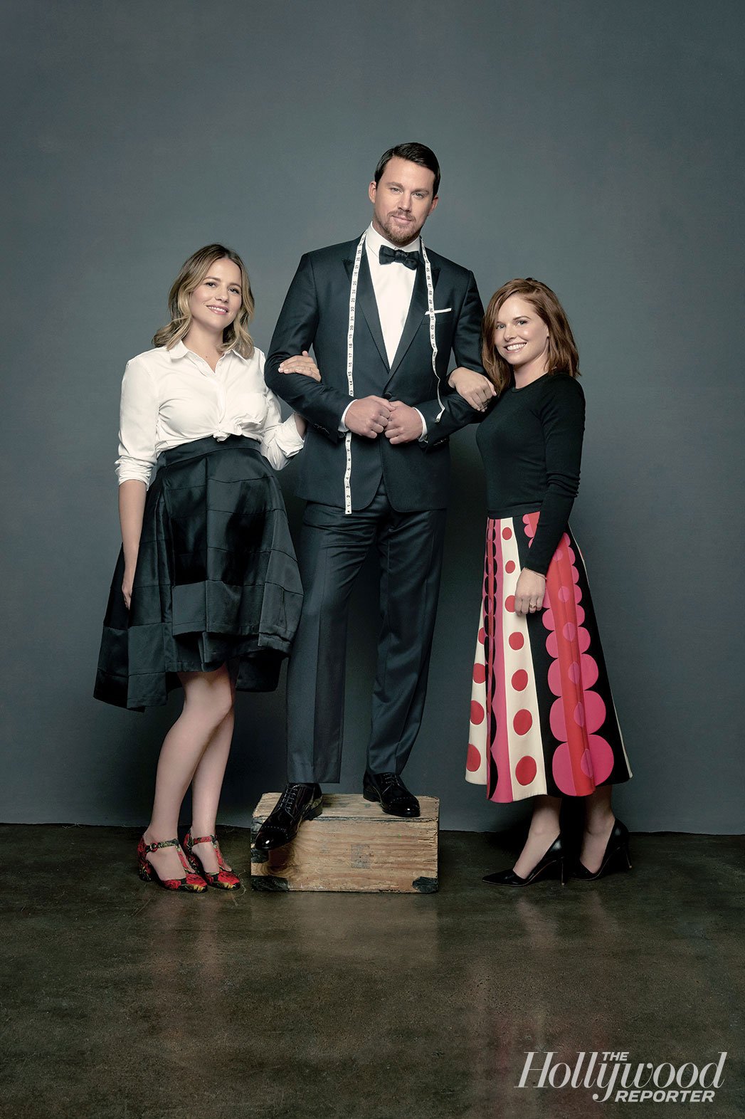 No stranger to the red carpet, actor Channing Tatum has sister stylists Wendi and Nicole Ferreira to thank for his impressive, trim looks. Tatum appeared in the latest issue of The Hollywood Reporter for the magazine’s Powerful Stylists issue. Photographed by Brian Bowen Smith, Tatum poses with the sisters as he sports a Dolce & Gabbana suit with Jimmy Choo shoes. The sisters are currently ranked number nineteen on The Hollywood Reporter’s list of powerful stylists. Talking about working with them, Tatum confesses, “They save me from myself. I keep asking for David Bowie in Labyrinth, and they just smile and pat me on the head, then are their incredible styling selves and make me look amazing.” See the full list of powerful stylists at HollywoodReporter.com.