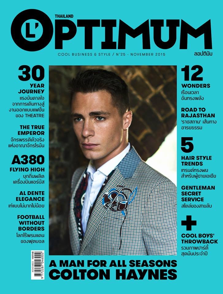 Colton Haynes covers the November 2015 issue of L’Optimum Thailand