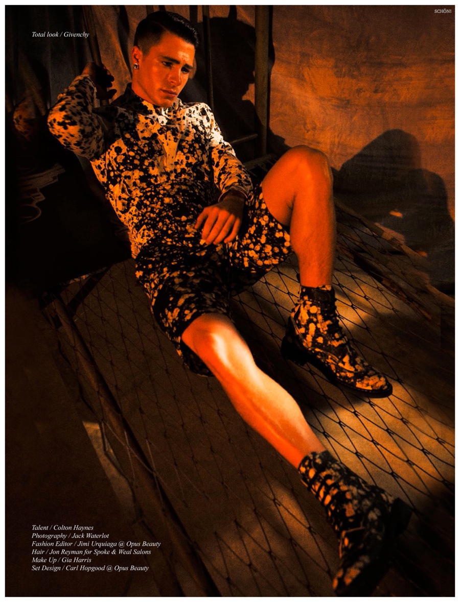Not forgetting his roots as a model, Arrow actor Colton Haynes appears in a dark new fashion spread for Schön! magazine. Photographed by Jack Waterlot, Haynes turns up the drama as he wears bold spring fashions styled by Jimi Urquiaga. The shoot plays host to a great variety of designer looks that highlight top brands such as Thom Browne and Saint Laurent.