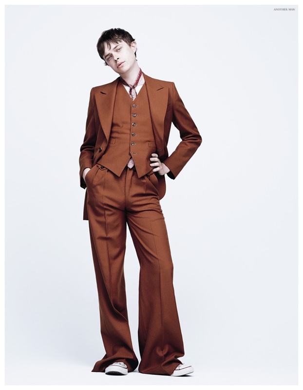 Another Man’s spring-summer 2015 cover star, Life actor Dane DeHaan has an adventurous affair with tailoring for a shoot lensed by photographer Willy Vanderperre. Wearing suits, cut both trim and wide, DeHaan is styled by Alister Mackie. Talking to the magazine about his upcoming role as Hollywood icon James Dean in Life, DeHaan shares, “I’ve had a poster of Dean on my wall since I was in college and still do now.”