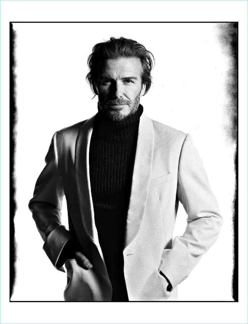 David Bailey photographs David Beckham for the July/August 2017 issue of L’Uomo Vogue. Wearing a turtleneck, the British star charms with a modest black and white picture. Approaching fall, stylist Cathy Kasterine dresses Beckham in new fashions from brands such as Alexander McQueen and Hermes. Sitting for striking portraits, Beckham gives us a look at the upcoming season of sharp outerwear.