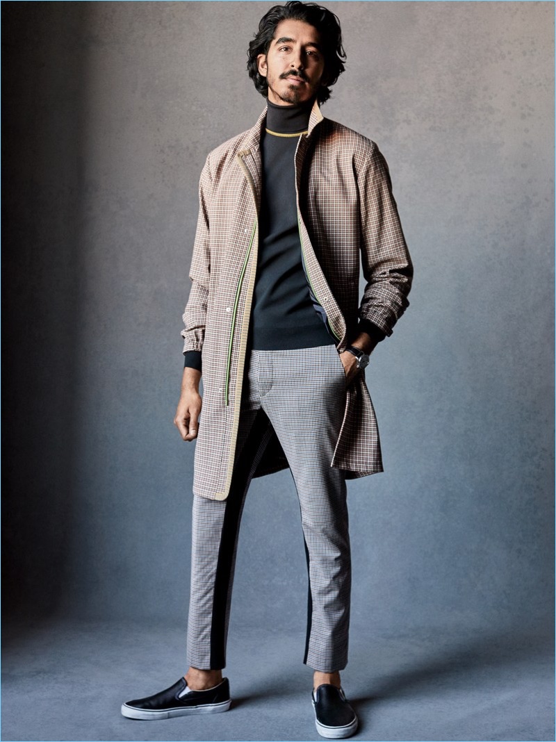 PinMaking a case for the tennis sweater, Dev Patel wears an orange sweater from AMI.PinFront and center, Dev Patel rocks a brown leather jacket with a crewneck and trousers by Neil Barrett. The Lion star also dons a TAG Heuer watch.PinAll smiles, Dev Patel wears a polo shirt and pleated trousers by Hermes. The actor also sports an Emporio Armani coat, Ralph Lauren loafers, a Shinola watch, and George Frost necklace.PinVictor Demarchelier photographs Dev Patel in a tonal print suit with a patterned shirt from Etro.PinDev Patel stands by textile prints with a spring-summer 2017 look from Italian fashion house, Prada. Mixing high-end and everyday brands, Patel also wears Vans sneakers and an IWC watch.