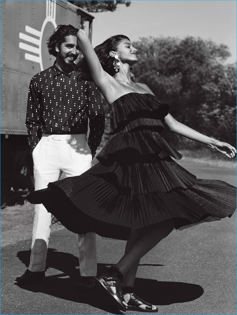 PinStarring in a fashion spread for the December 2016 issue of Vogue, actor Dev Patel links up with model Imaan Hammam.PinImaan Hamman embraces Dev Patel, who wears a Burberry suit with an Agnes B shirt.PinTaking to an open field with Imaan Hammam, Dev Patel wears Perse t-shirt with Save Khaki United jeans, and Frye boots.PinAppearing alongside Imaan Hammam, actor Dev Patel dons a patterned shirt by David Hart with white pants.PinPosing for a picture with Imaan Hammam, Dev Patel wears a Marni shirt and Brooks Brothers pants.