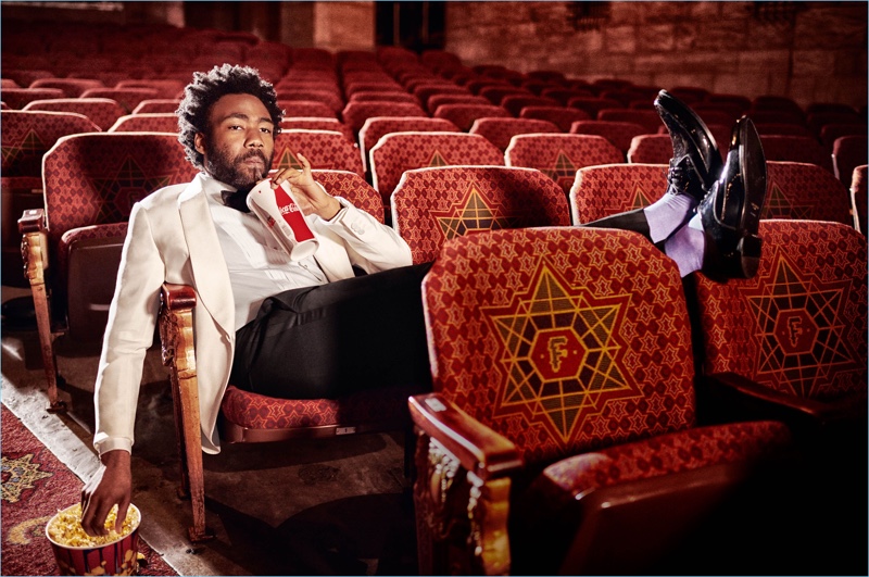 Esquire taps Donald Glover as its March 2018 cover star. David Burton photographs the star for a tuxedo-clad outing. Front and center, Glover wears brands like Balmain and Ermenegildo Zegna Couture styled by Matthew Marden (See Management). Glover also talks to Esquire about the second season of Atlanta. I tried to do the Q-Tip take on it,