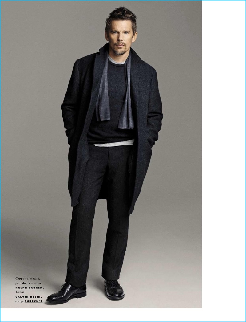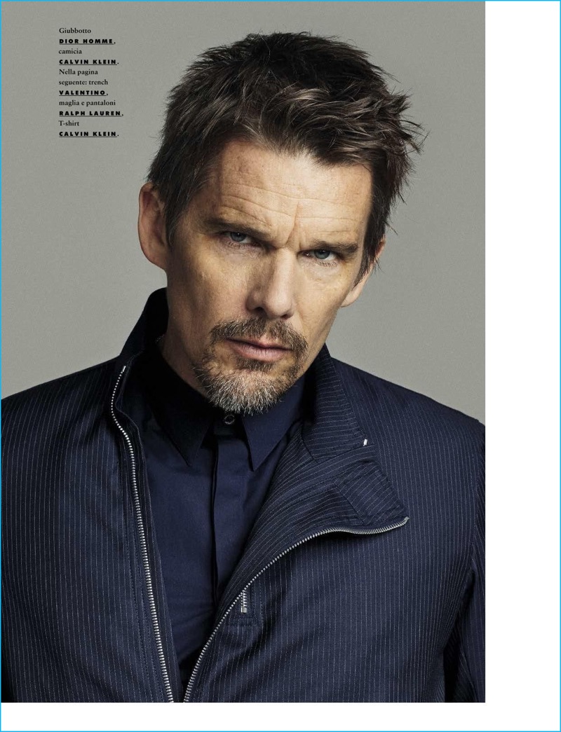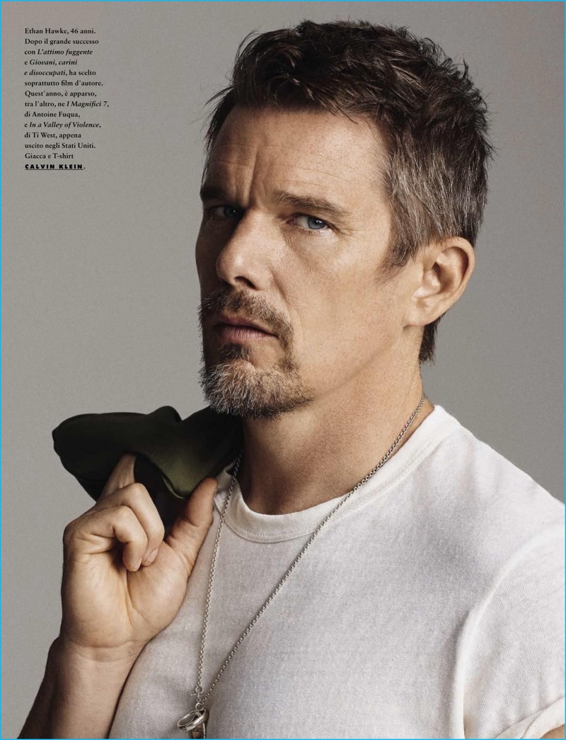 PinActor Ethan Hawke sports a t-shirt and jacket from Calvin Klein.PinRandall Mesdon photographs Ethan Hawke in a Calvin Klein shirt with a Dior Homme bomber jacket.PinAmerican actor Ethan Hawke dons a coat, sweater, trousers and scarf from Ralph Lauren. Hawke also sports a Calvin Klein t-shirt and Church’s dress shoes.PinDanielle Nachmani. outfits Ethan Hawke in a Valentino trench coat, Acne Studios sweater, and Calvin Klein t-shirt.PinAmerican actor Ethan Hawke is front and center in a Dior Homme jacket and Calvin Klein shirt.PinHeading outdoors, Ethan Hawke dons a Valentino trench coat and Calvin Klein t-shirt. The American actor also wears a Valentino sweater and trousers.