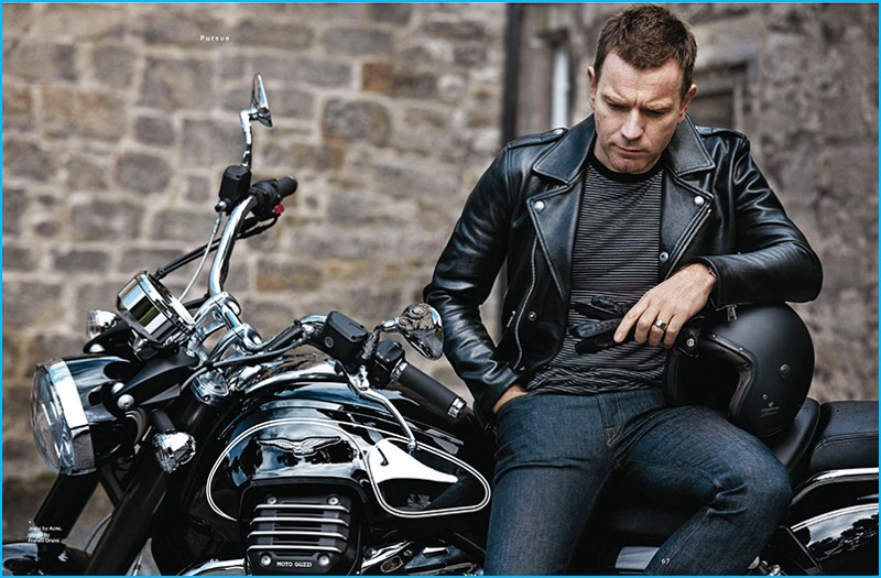 Ewan McGregor is “Riding High” as he covers the fall 2016 edition of Bloomberg Pursuits. The actor and motorcycle enthusiast links up with photographer Cyril Matter for the occasion. Outfitted by stylist Brian Coats, McGregor’s wardrobe is not a far cry from mimicking his own personal style. The Fargo actor is pictured in timeless essentials such as the denim jacket, striped t-shirt, and leather biker jacket.