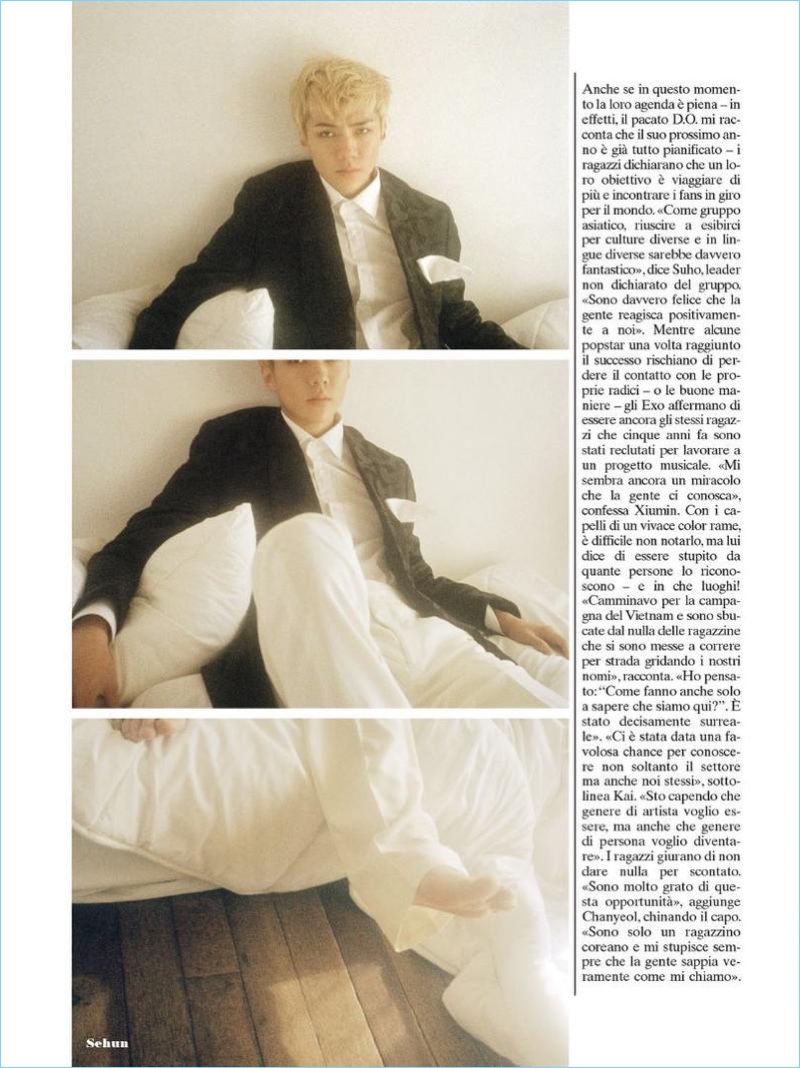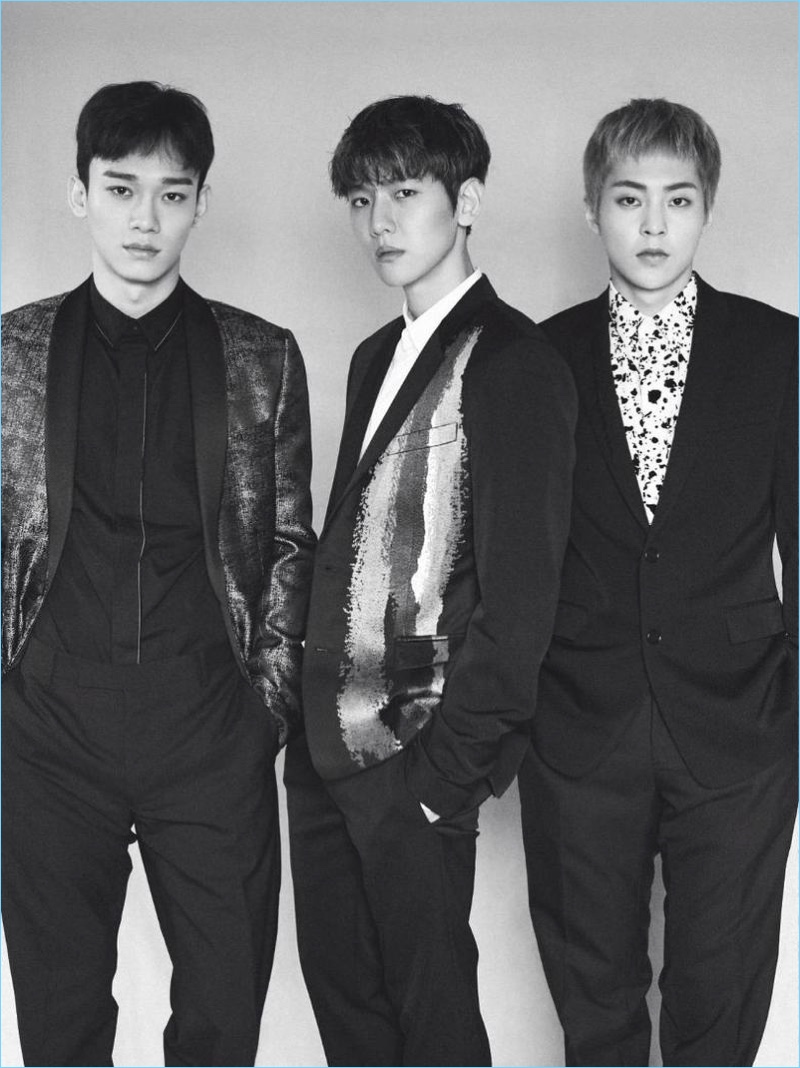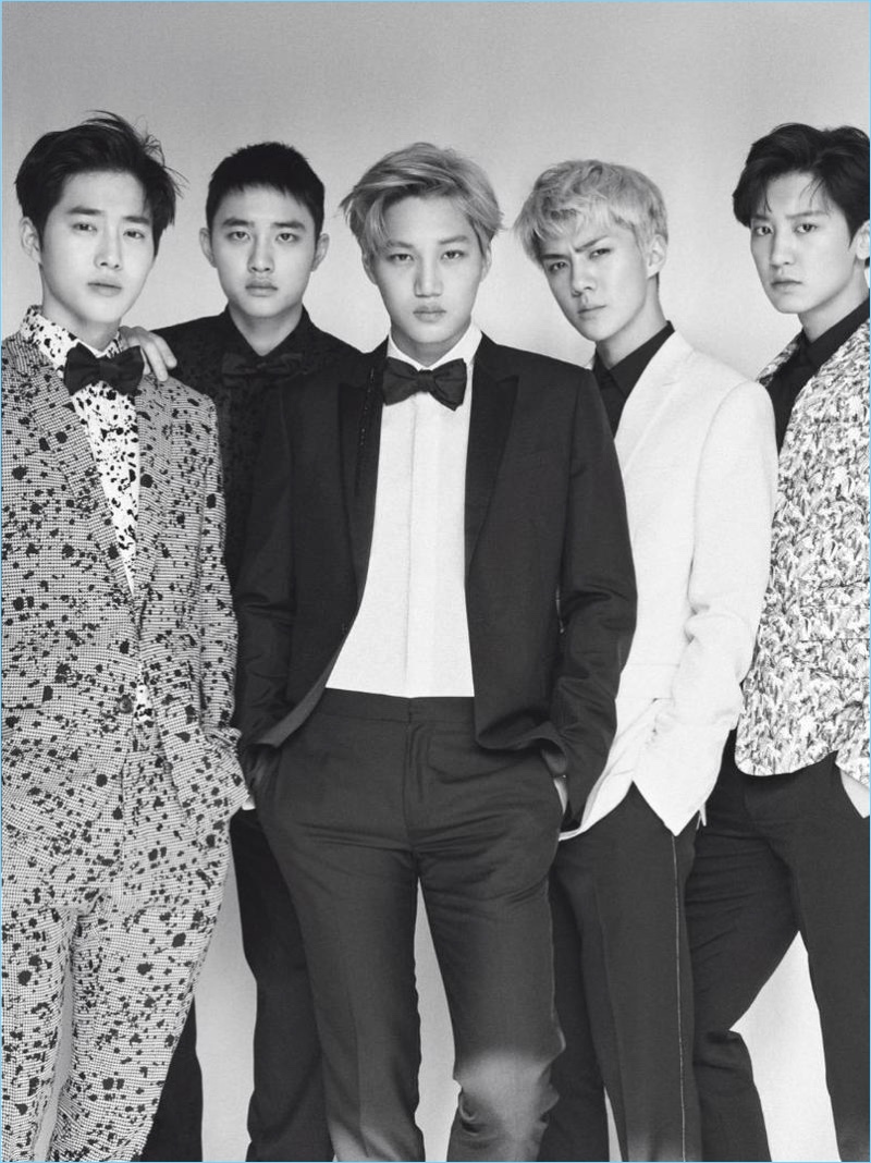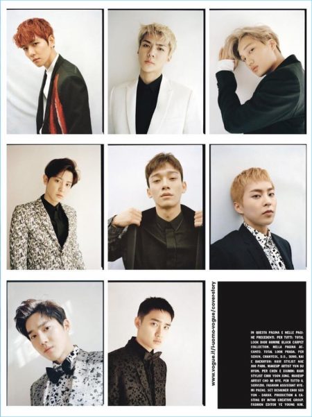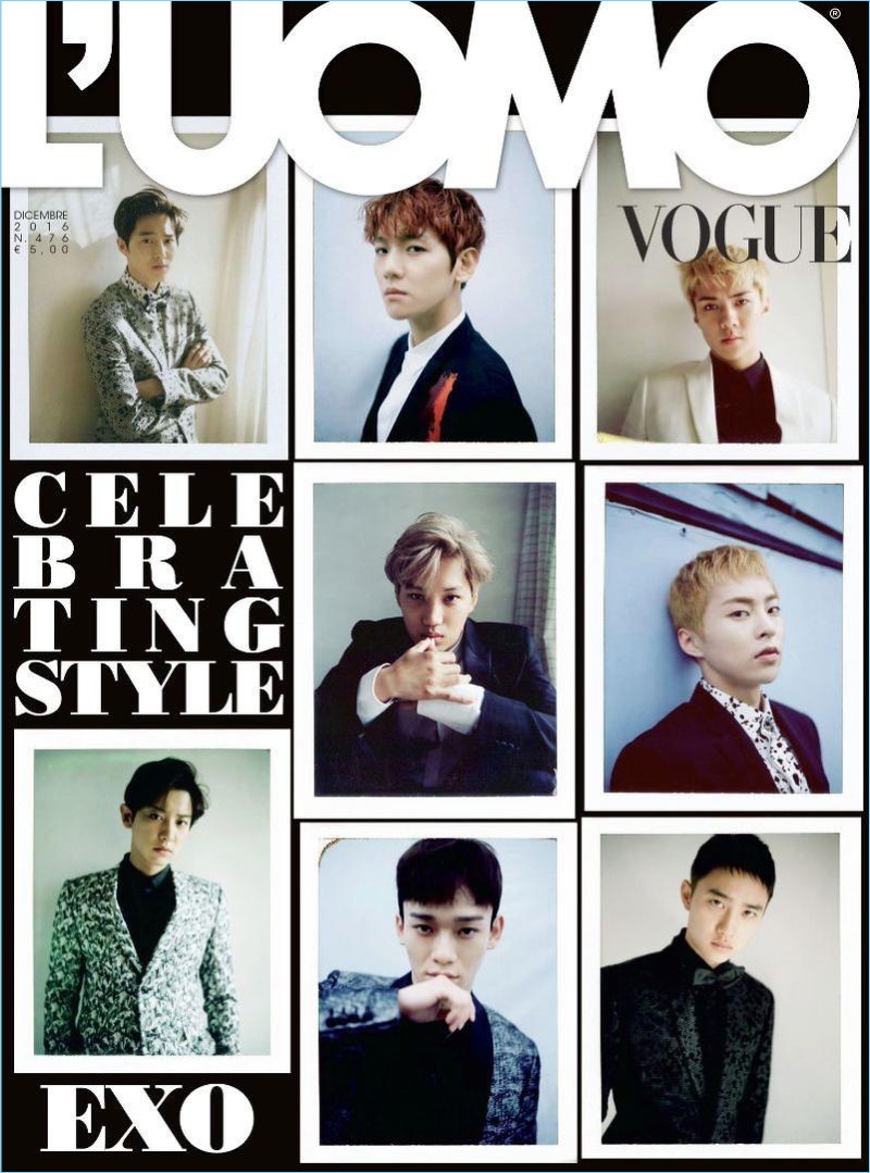 L’Uomo Vogue enlists Korean music group EXO for its December 2016 cover story. Baekhyun, Chen, Lay, Sehun, Chanyeol, D.O., Kai, Suho, and Xiumin come together in designer fashions from brands such as Gucci. EXO appears before the lens of photographer Peter Ash Lee and receives a style update, courtesy of stylist, Kim Yeyoung.