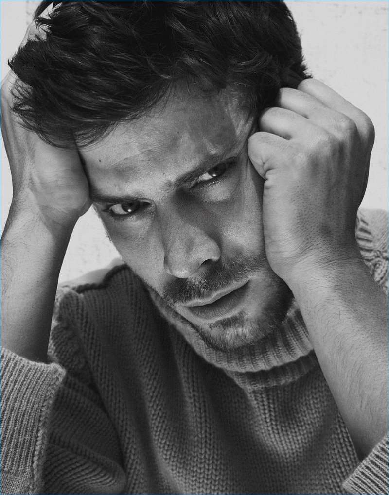 Ready for his close-up, François Arnaud sports a Stella McCartney sweater.