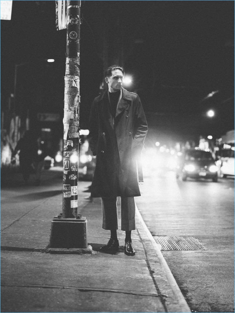 Delivering a side profile, G-Eazy wears a Louis Vuitton trench coat and trousers. He also sports Christian Louboutin shoes.Pin