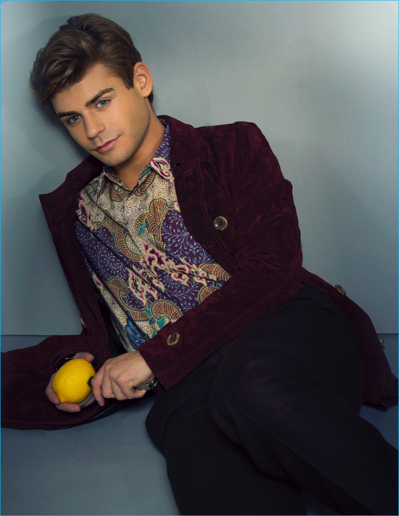 King Kobra star, Garrett Clayton is front and center for a new photo shoot with Ferrvor magazine. The American actor connects with photographer Kaleb Khu for the occasion. Heading to the studio, Clayton wears patterned shirts, sharp coats, and refined tailoring. Stylist Apuje Kalu outfits the star in a host of brands that range from Theory and Kenzo to Prada.