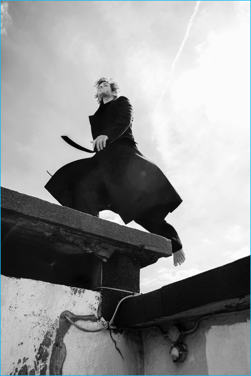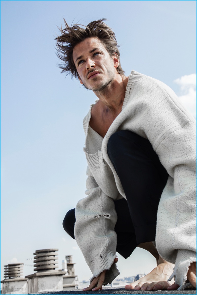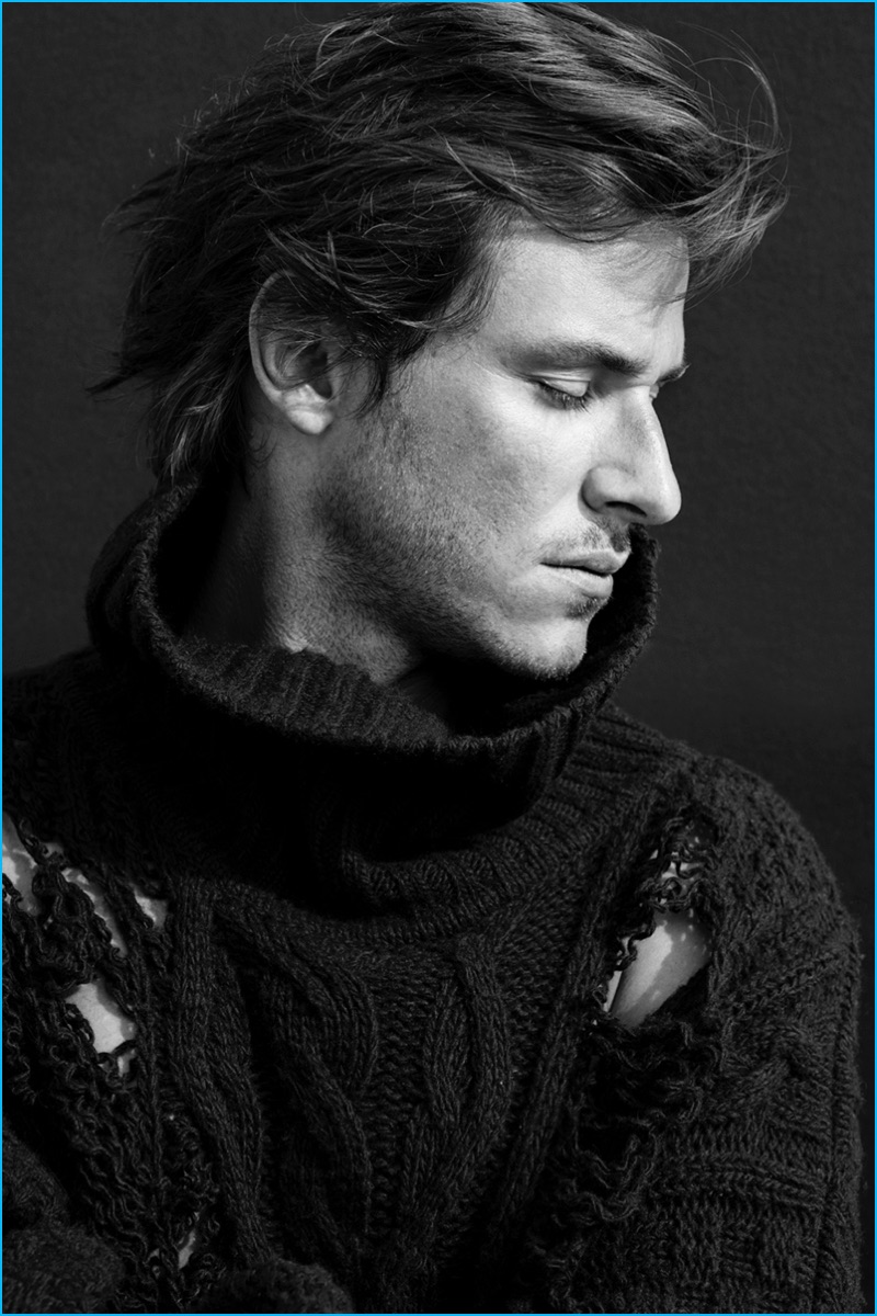 French actor Gaspard Ulliel covers the most recent issue of L’Express Styles. Starring in a spread entitled L’Oiseau Rare or The Rare Bird, Ulliel connects with photographer Julien Vallon. Taking to the outdoors, the 31-year-old actor is pictured on a rooftop with a soot covered face. Embracing fall’s distressed fashion trend, Ulliel is styled by Mika Mizutani. The star of director, Xavier Dolan’s It’s Only the End of the World, Ulliel is captured in looks from brands such as Raf Simons, Faith Connexion, and Valentino. / Hair by Massato. Makeup by Phophie Mathias (Open Talent Paris). Assistance by Mickael Bambi and Louis Yago.