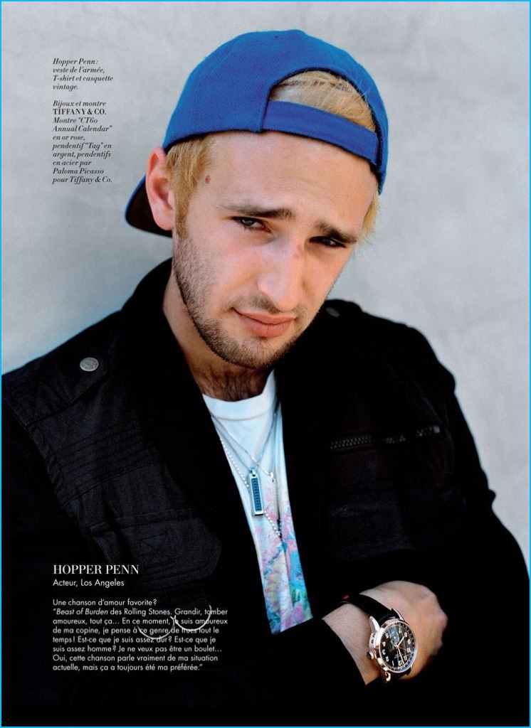 Hopper Jack Penn pictured in a relaxed image from his L'Officiel photo shoot.Pin