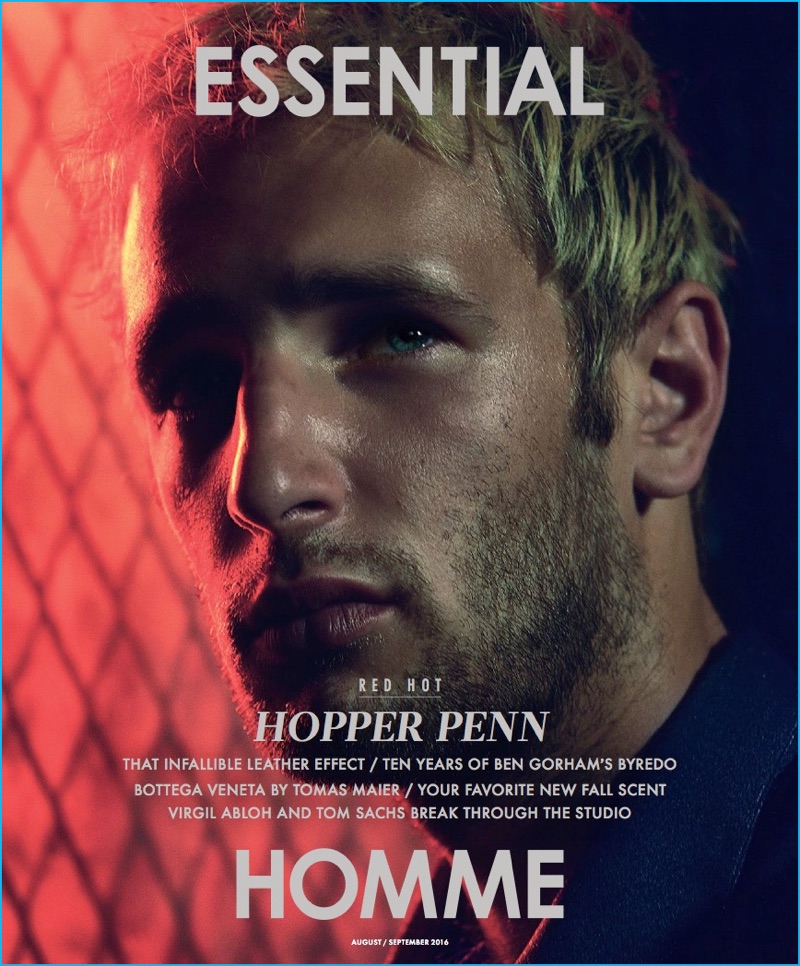 Hopper Penn covers the August/September 2016 issue of Essential Homme.Pin