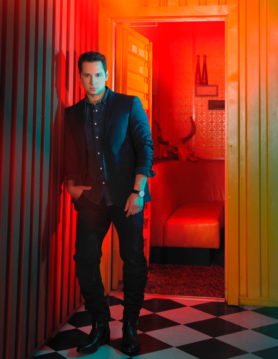 Matt McGorry wears jacket Sandro, shirt Theory, pants Nudie, watch Daniel Wellington and shoes Pskaufman.Pin