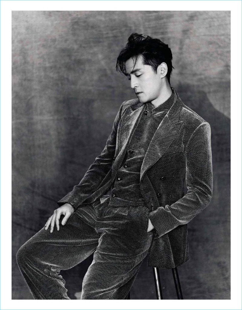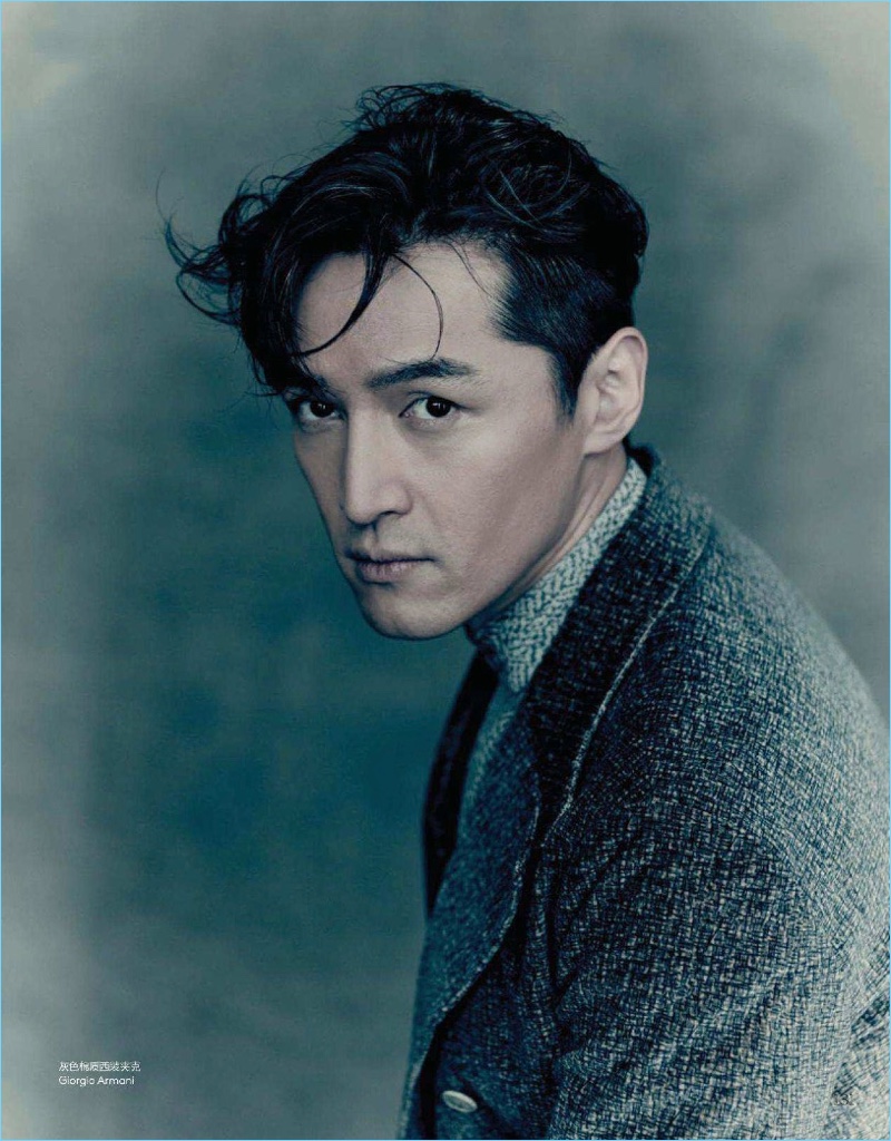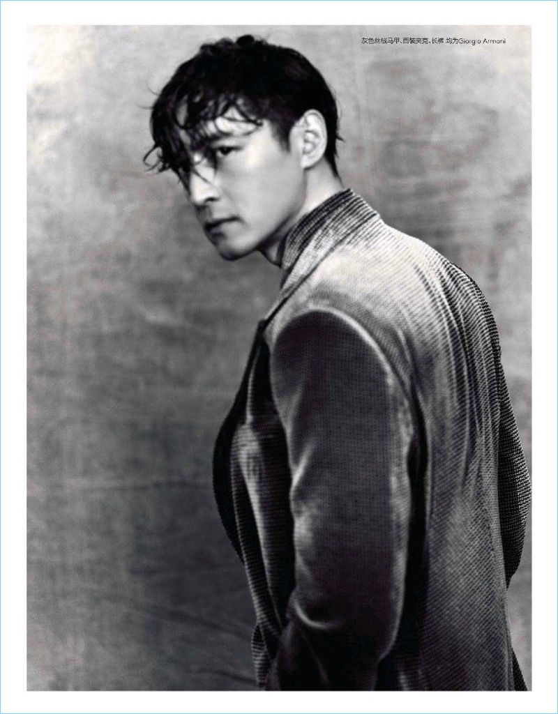 A dapper vision, Hu Ge wears Giorgio Armani.
