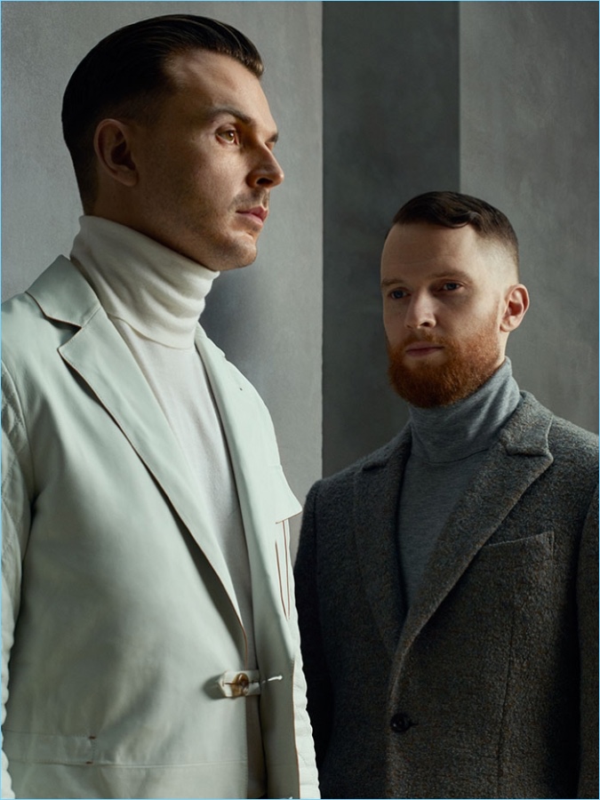 After a Dior-clad story, Theo Hutchcraft returns to the pages of Zoo magazine. This time around, Hutchcraft poses with his Hurts bandmate Adam Anderson. Photographer Bryan Adams captures the duo in sharp fashions from Italian brand Ermenegildo Zegna Couture. Making a case for sartorial style, Hurts wears sharp suits, outerwear, and exquisite footwear for the photo shoot. Jo Levin styles the luxurious outing, while John Vial guarantees impeccably slicked back hair.
