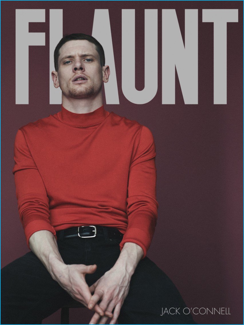 Money Monster star Jack O’Connell dons a red Tom Ford sweater as he covers the latest issue of Flaunt magazine. Sporting designer fashions for the outing, the English actor ventures outdoors for a casual photo shoot with stylist Garth Spencer and photographer Jason Hetherington.