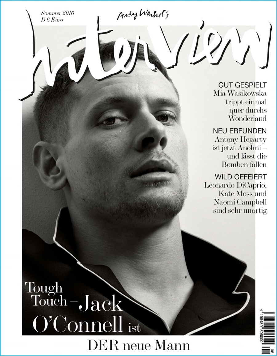Tulip Fever actor Jack O’Connell graces yet another cover, celebrating summer with Interview Germany. Gracing the cover with a black & white close-up, O’Connell is photographed by Stefan Heinrichs. Captured in a minimal photo shoot, the 25 year-old actor wears a wardrobe that features brands such as Loewe and Louis Vuitton. Styled by Darcy Backlar, O’Connell sports oversized sweaters, wide-cut trousers and essential dress shirts.