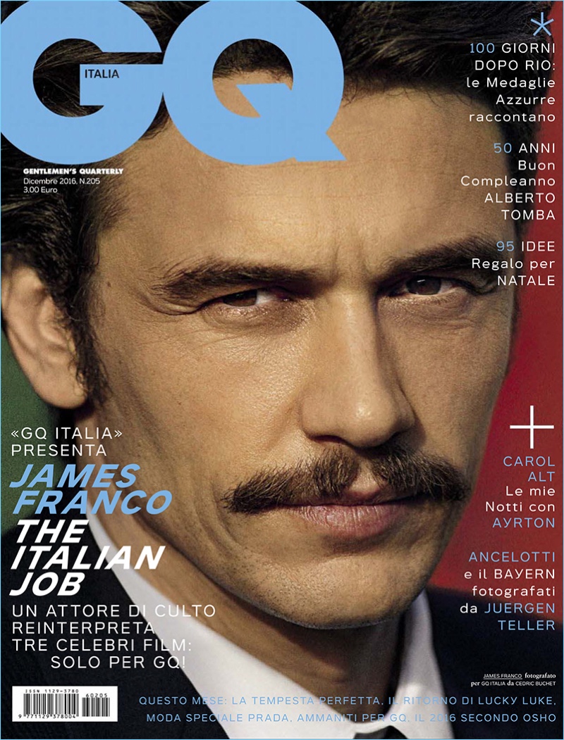 A man who wears many hats, James Franco takes on a cheeky persona for GQ Italia’s new cover story. Cédric Buchet photographs the King Cobra actor for the magazine’s December 2016 issue. Connecting with stylist, Andrea Tenerani, Franco wears designer suits and workwear-inspired separates for the photo shoot.