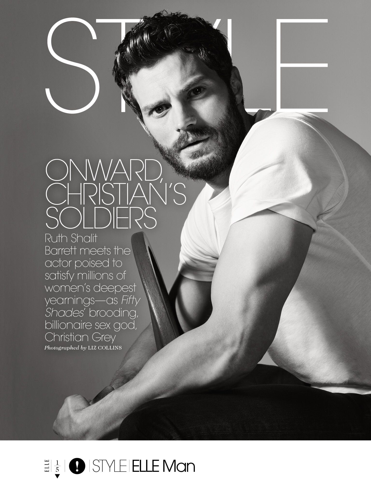 Jamie Dornan reunites with photographer Liz Collins to a shoot a feature for the February 2015 edition of Elle. Discussing his role as Christian Grey in the upcoming Fifty Shades of Grey film, Dornan confesses that not everyone is happy with his casting. He shares, “The other day, this woman came up and started shouting at me, ‘Matt Bomer’s the real Christian Grey. And I was like, um okay. I mean, even if you cast Matt Bomer, or alexander Skarsgard, or Charlie Hunnam, or any of those other guys–we’d all just be doing our best, you know? Christian Grey–he isn’t a real person. He’s a superhero–a myth. He’s like Bigfoot! He’s unbelievable. He’s unattainable. There’s no actor in the world who could live up to that.”