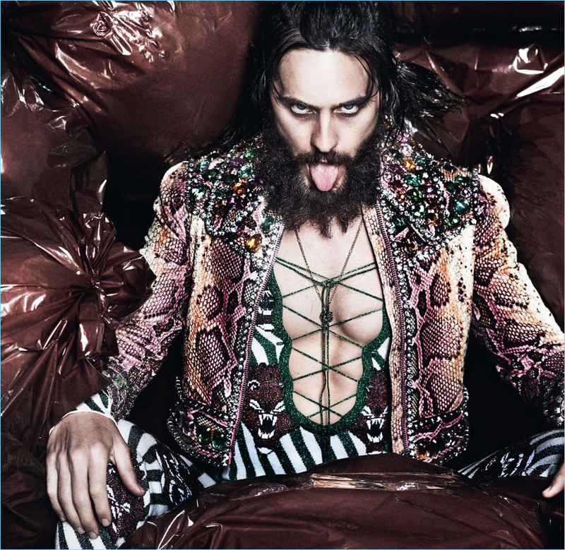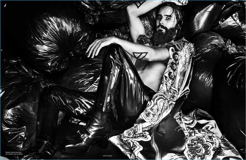 Jared Leto brings a rebellious energy to Man About Town’s latest issue. The muli-talented singer and actor connects with photographer Mario Testino for a glam rock photo shoot. Testino captures Leto with the help of stylist James Valeri. Continuing Leto’s relationship with Gucci, Valeri styles the entertainer in pieces from the Italian fashion house.