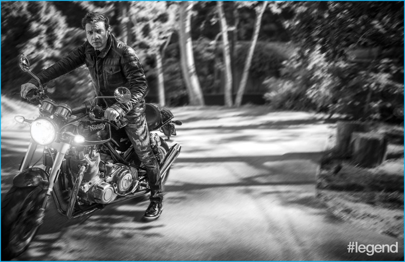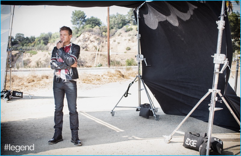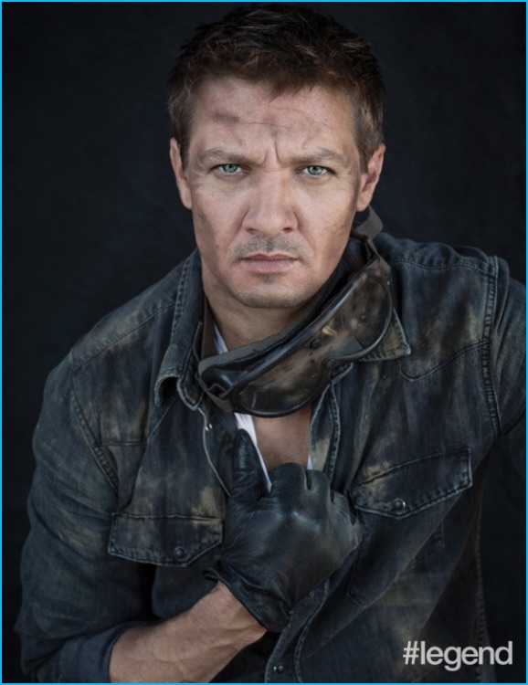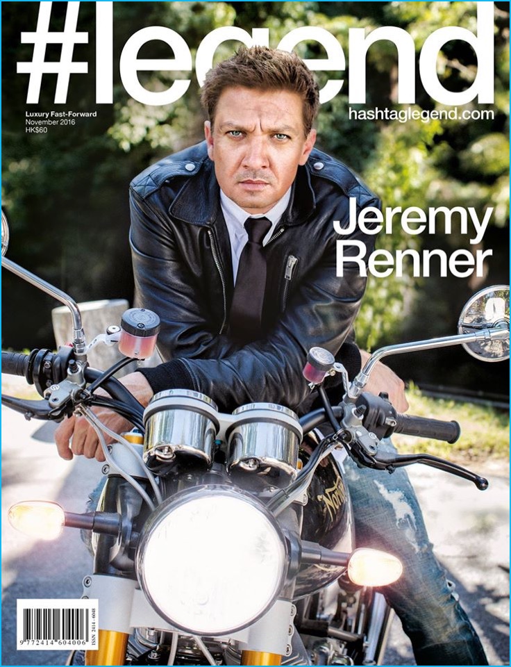 Jeremy Renner rocks a leather jacket and distressed denim jeans as he covers the November 2016 issue of #Legend. The American actor connects with photographer Sarah Dunn and stylist Paris Libby for a rugged shoot outdoors. Talking to the magazine about fame, Renner expands on an earlier quote to The Hollywood Reporter.