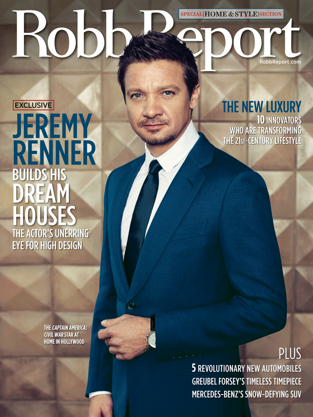 Jeremy Renner covers the May 2016 issue of Robb Report.