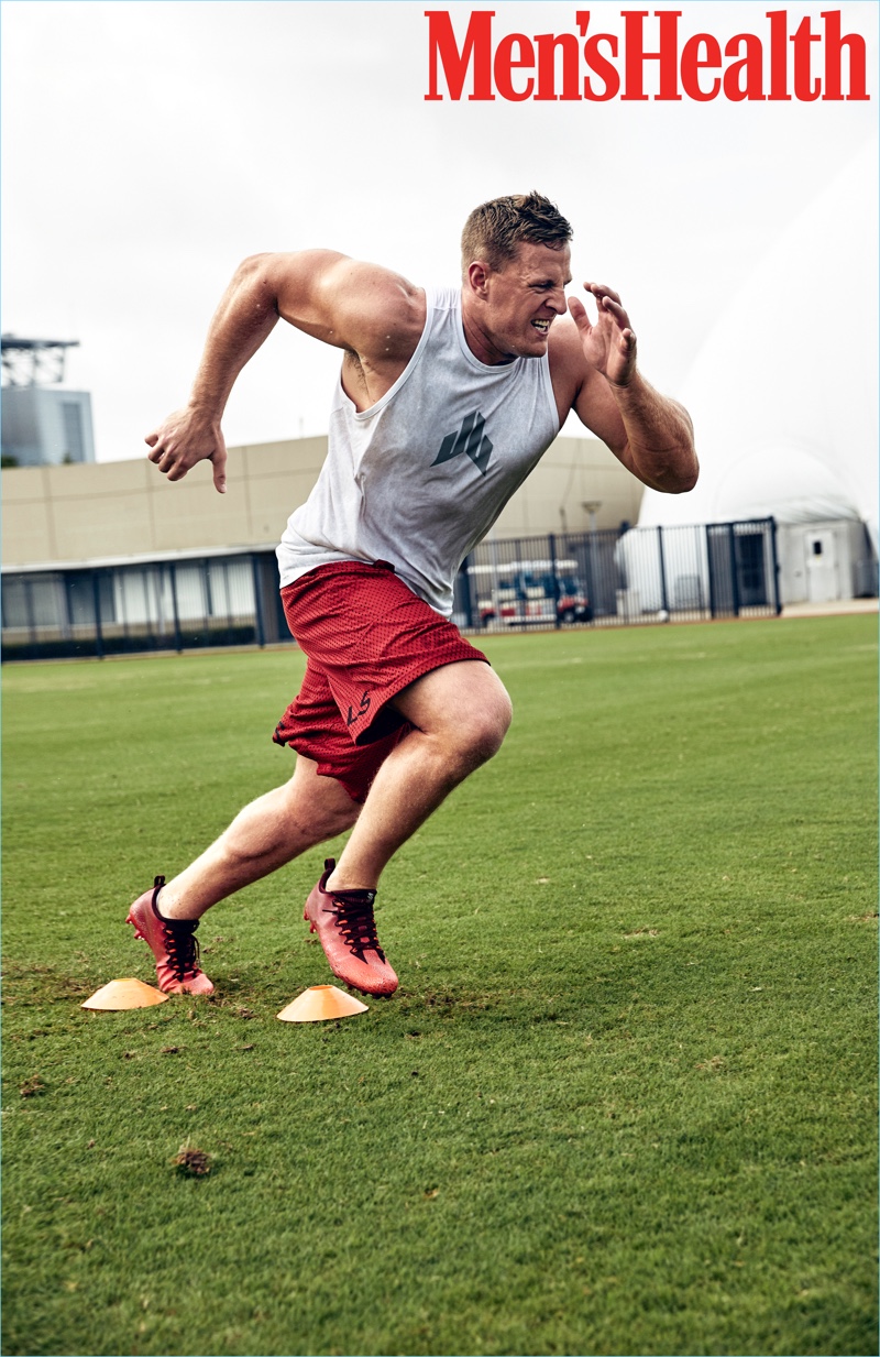 Men’s Health has football on the mind as it approaches its latest issue. The magazine taps four cover stars from four different NFL teams as its newest cover men. J.J. Watt, Russell Wilson, Antonio Brown, and Devonta Freeman cover the issue. They all bring their A game, taking to the studio and hitting poses respective to their positions on the field. The leading athletes talk about everything from mental health to staying on top of their workouts.