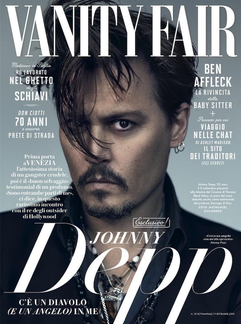 PinJohnny Depp covers the September 2015 issue of Vanity Fair Italia. Promoting his latest film Black Mass, Depp serves up an edgy hairstyle as he poses for a photo by Nathaniel Goldberg.