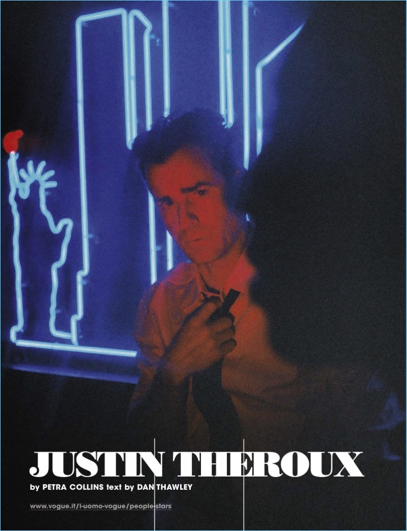 The star of The Leftovers, actor Justin Theroux stars in a new photo shoot. Theroux embraces a mysterious persona as he appears in the magazine’s April 2017 issue. Photographer Petra Collins captures a cinematic feel, collaborating with stylist, Michael Philouze. Maintaining a simple aesthetic, Theroux’s wardrobe for the shoot revolves around choice pieces by Tom Ford.
