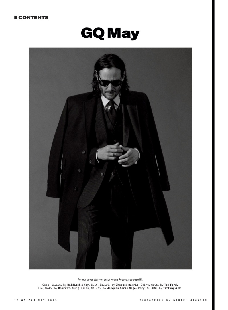 Donning a three-piece suit and coat, Keanu Reeves is a cool vision as he covers GQ. Reeves connects with the American magazine for its May 2019 issue. The John Wick star takes to the studio with photographer Daniel Jackson for the outing. George Cortina outfits Reeves in brands such as Saint Laurent, Bottega Veneta, and Giorgio Armani.
