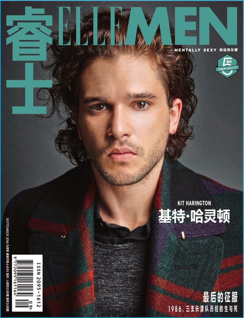 Game of Thrones star Kit Harington snags a new cover with the September 2016 issue of Elle Men China. Making a style statement in tartan, Harington covers the Chinese magazine in a check coat from British fashion house, Burberry. Connecting with photographer Nigel Parry for the photo shoot, Harington poses for a mix of portraits and moody images. Styled by Ise White, the 29-year-old actor warms up to luxury labels such as Hermes, Prada, and John Varvatos.