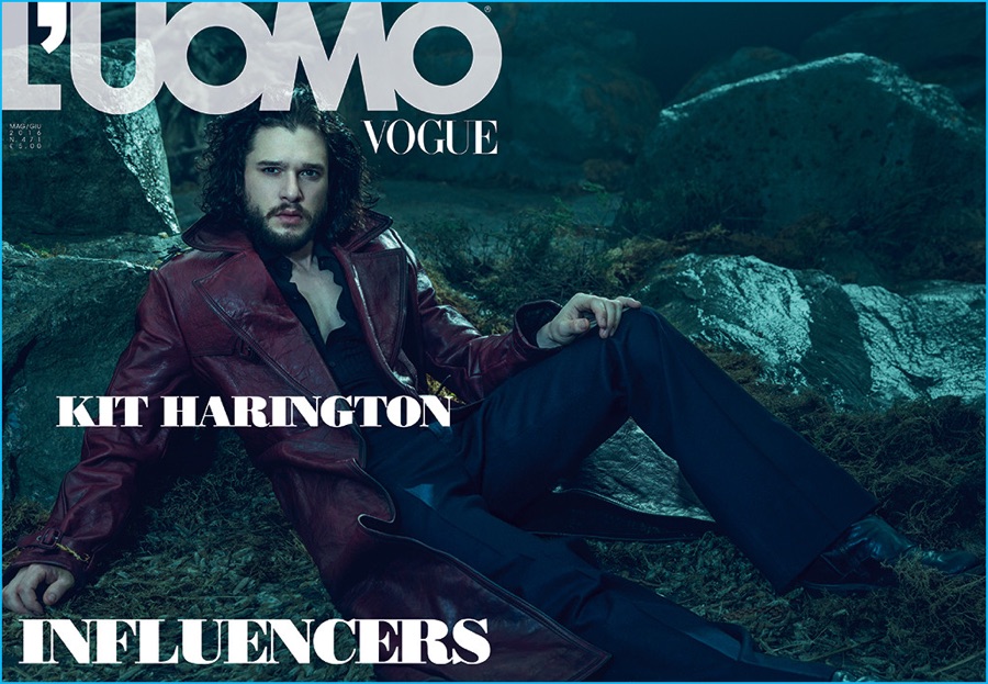 After his grand reveal on Game of Thrones, actor Kit Harington graces the cover of L’Uomo Vogue’s May/June 2016 issue. Photographed by Norman Jean Roy, Harington embraces a moody narrative as he dons dark fashions styled by Robert Rabenstiner.