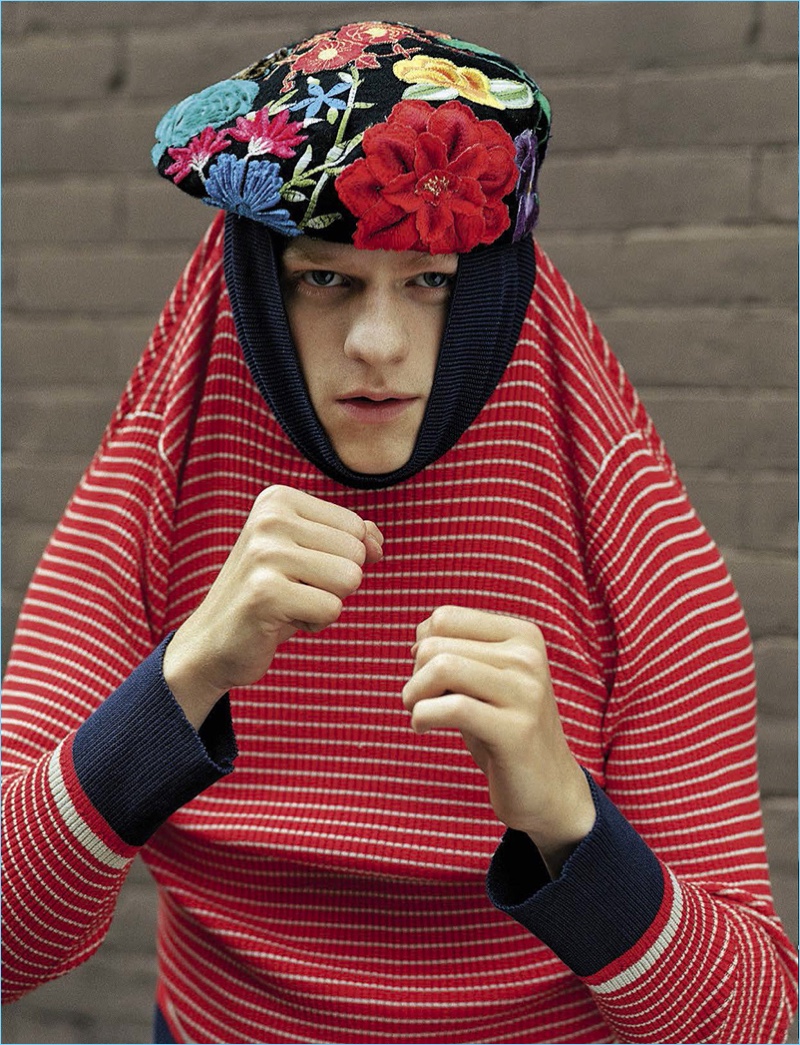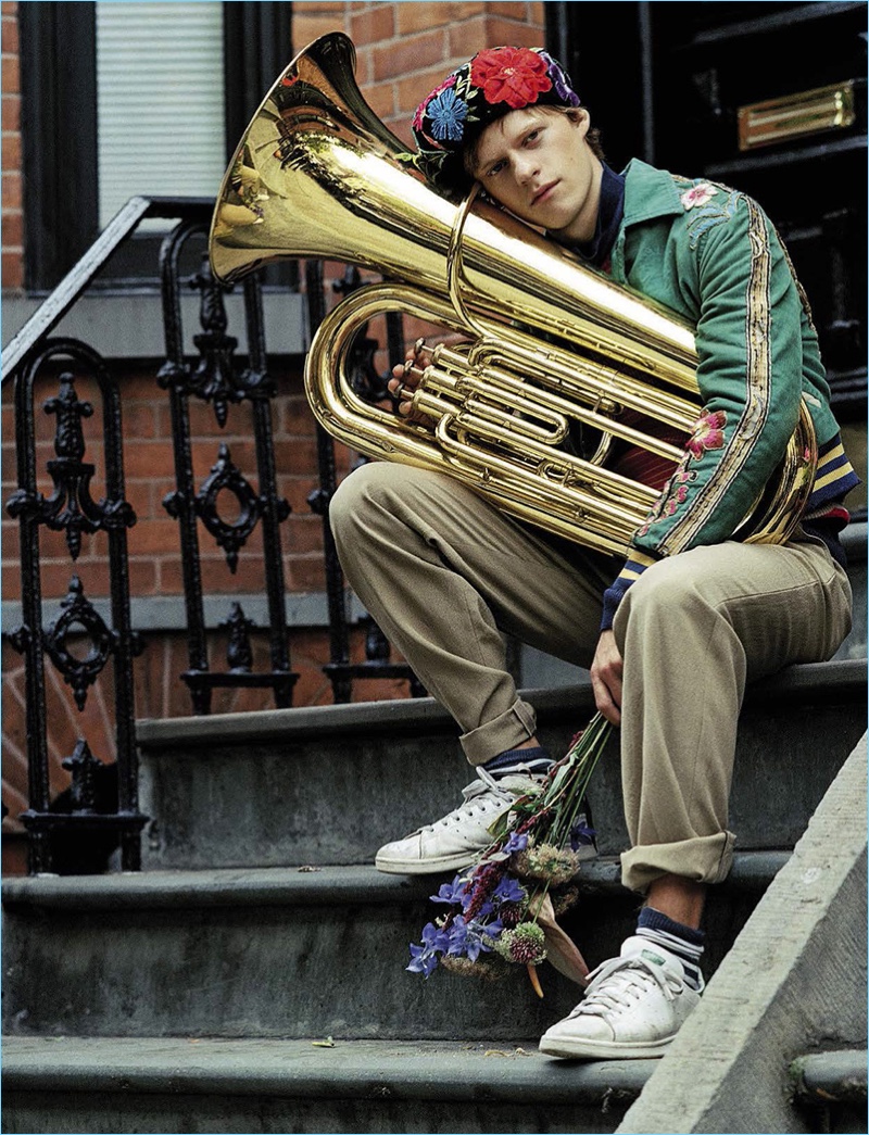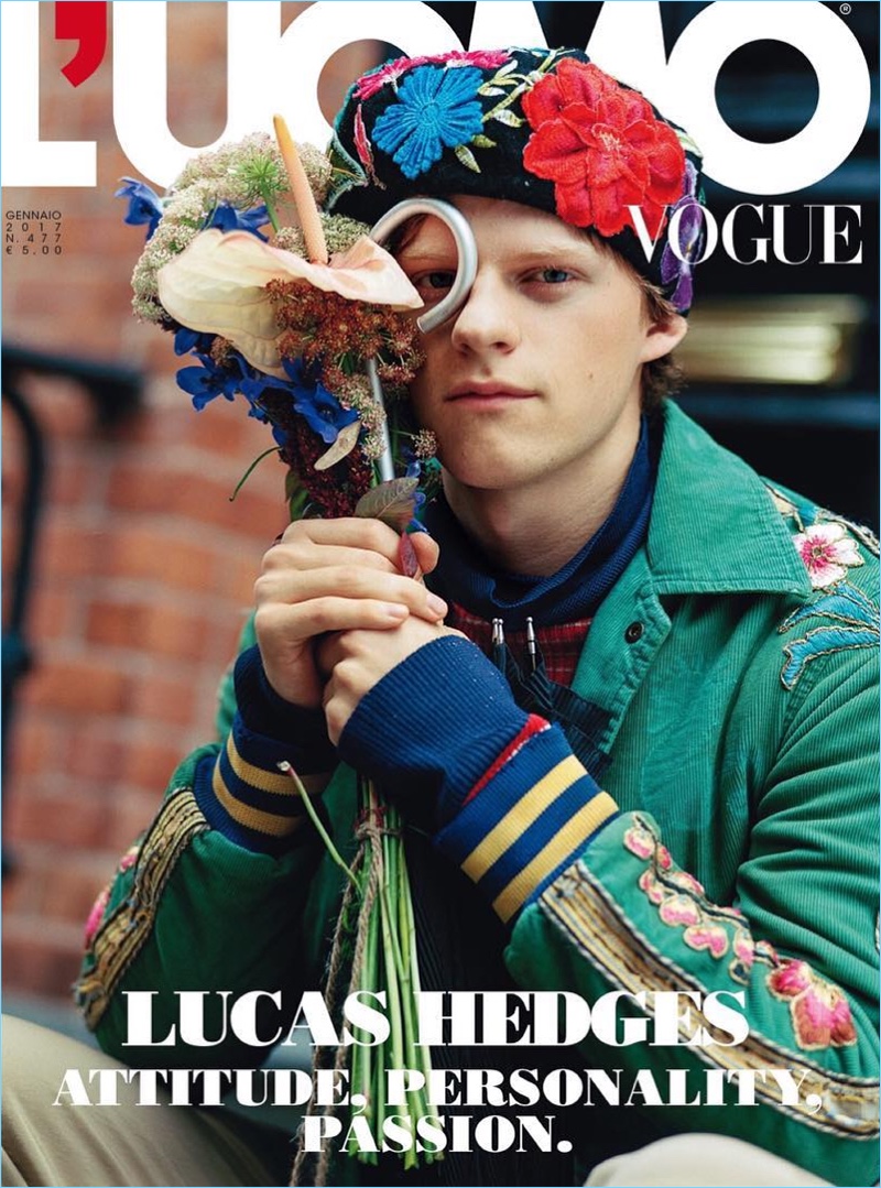 Lucas Hedges steps into the quirky world of Bruce Weber for the January 2017 issue of L’Uomo Vogue. Hedges connects with the fashion photographer for an eccentric cover photo shoot. The Manchester by the Sea actor warms up to bold fashions from brands such as Gucci. Photographed in New York City, Hedges also wears the latest from labels like Balenciaga and Prada.