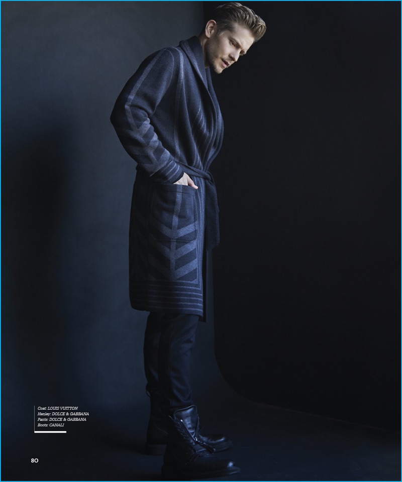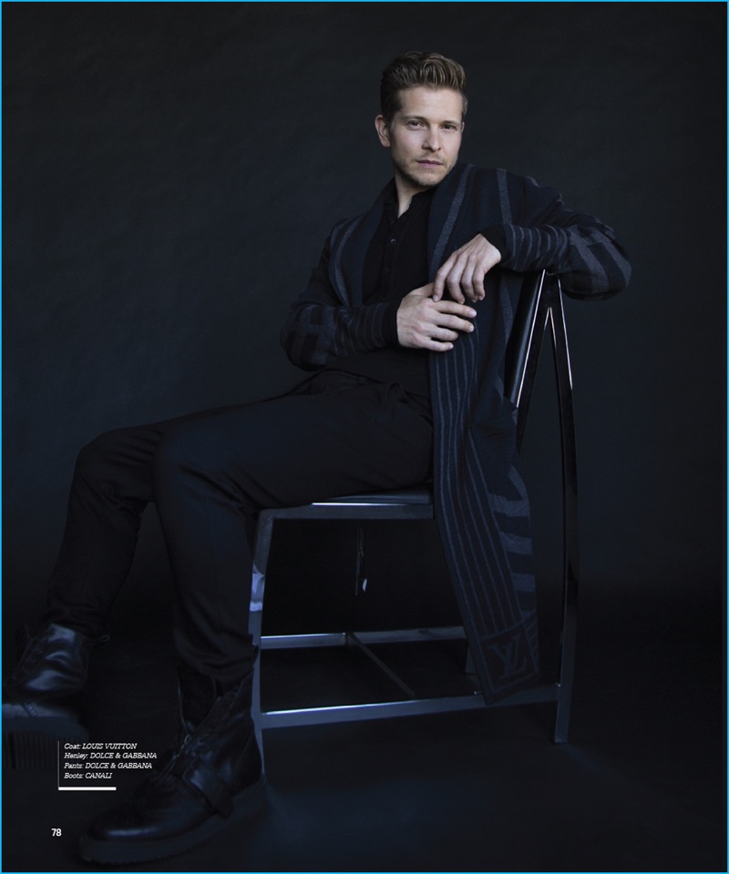 Haute Living links up with Matt Czuchry for a new feature in its latest issue. The 39-year-old actor connects with photographer Karl Simone and stylist Bruno Lima for the occasion. Czuchry embraces dashing fall fashions in black and grey. The Gilmore Girls actor sports long coats, suits, and sweaters from labels such as Louis Vuitton.