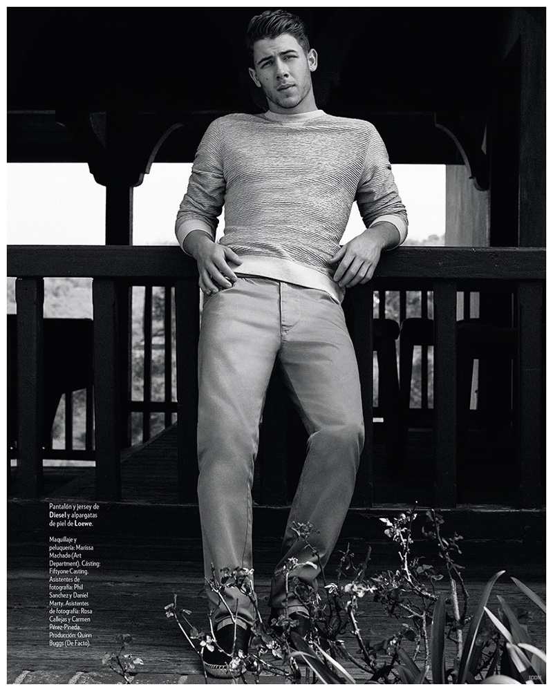 Covering the latest issue of Spanish magazine Icon, Nick Jonas continues to be a regular fixture of fashion publications as he connects with photographer Michael Schwartz (De Facto Inc.). Heading outdoors for a relaxed photo shoot, Jonas sports a mix of casual and tailored looks, pulled together by stylist Angela Esteban Libero. / Grooming by Marissa Machado.