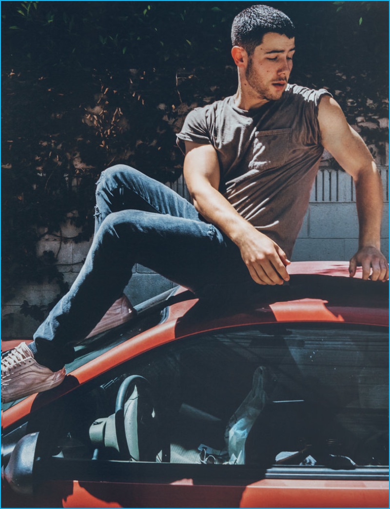 Nick Jonas rocks a look from Saint Laurent as he covers the fall 2016 edition of British fashion magazine, Wonderland. Photographed by Christian Oita with styling by Shaun Samson, Jonas embraces a sporty style aesthetic for the relaxed photo shoot.