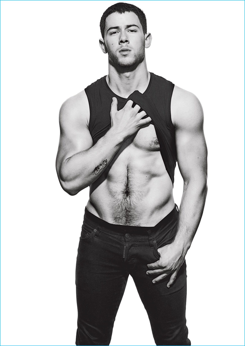 Nick Jonas rocks a black muscle tee and denim jeans as he covers the December 2016 issue of Men’s Fitness. The singer and actor talks to the magazine about how he finds a happy medium between dealing with his type-1 diabetes and working out. Jonas shares, “It’s important to stay in your lane.”
