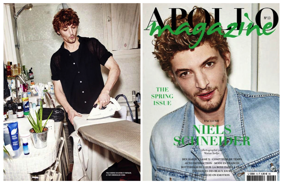 Apollo magazine embraces spring with its latest issue featuring cover star Niels Schneider. The actor is captured in the midst of domestic bliss as he links up with photographer Matias Indjic. Wearing a playful mix of designer fashions, Schneider is styled by Marco Manni. Posing for nonchalant images, Schneider is pictured in Saint Laurent, Prada, Gucci and more.