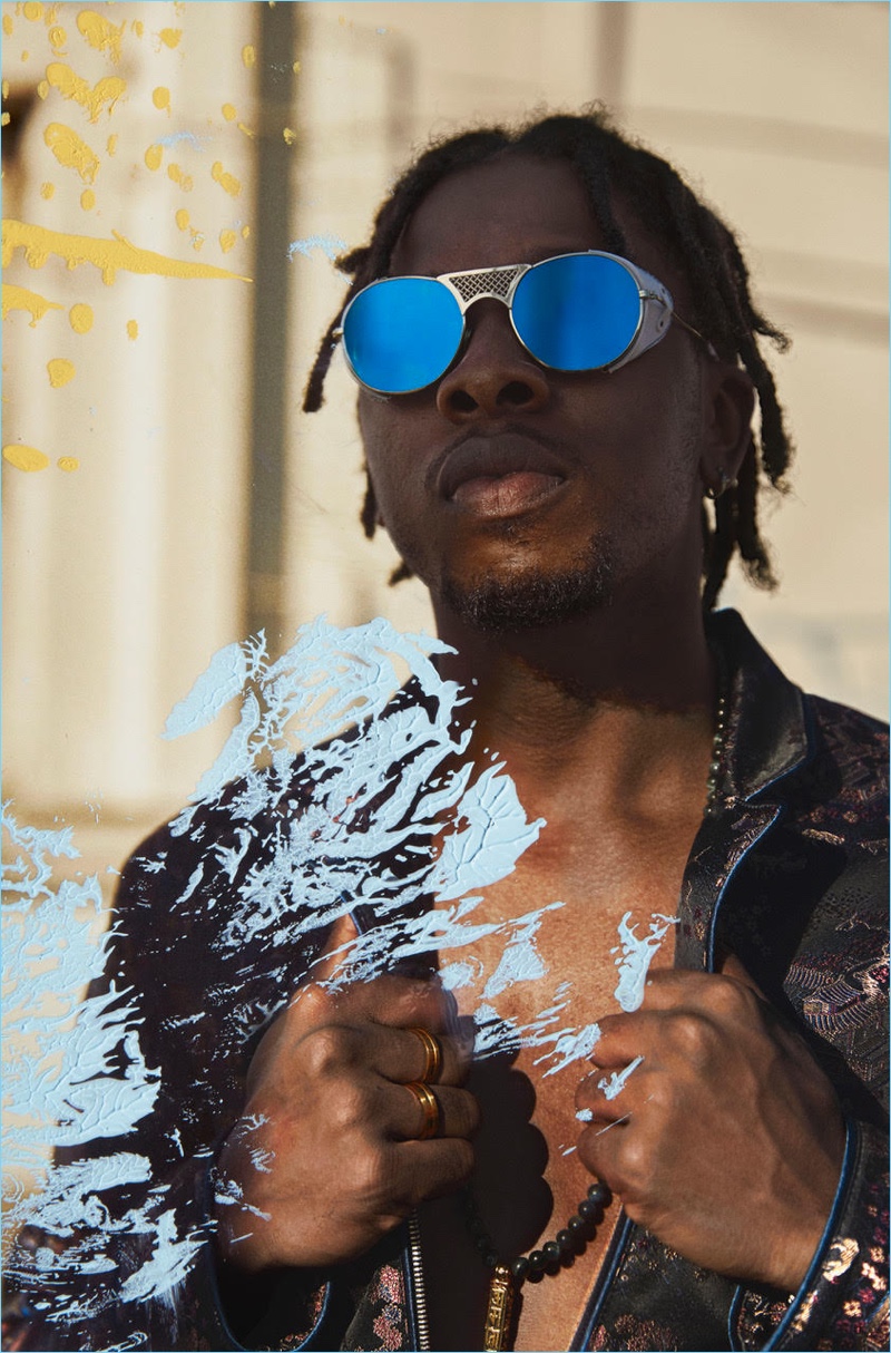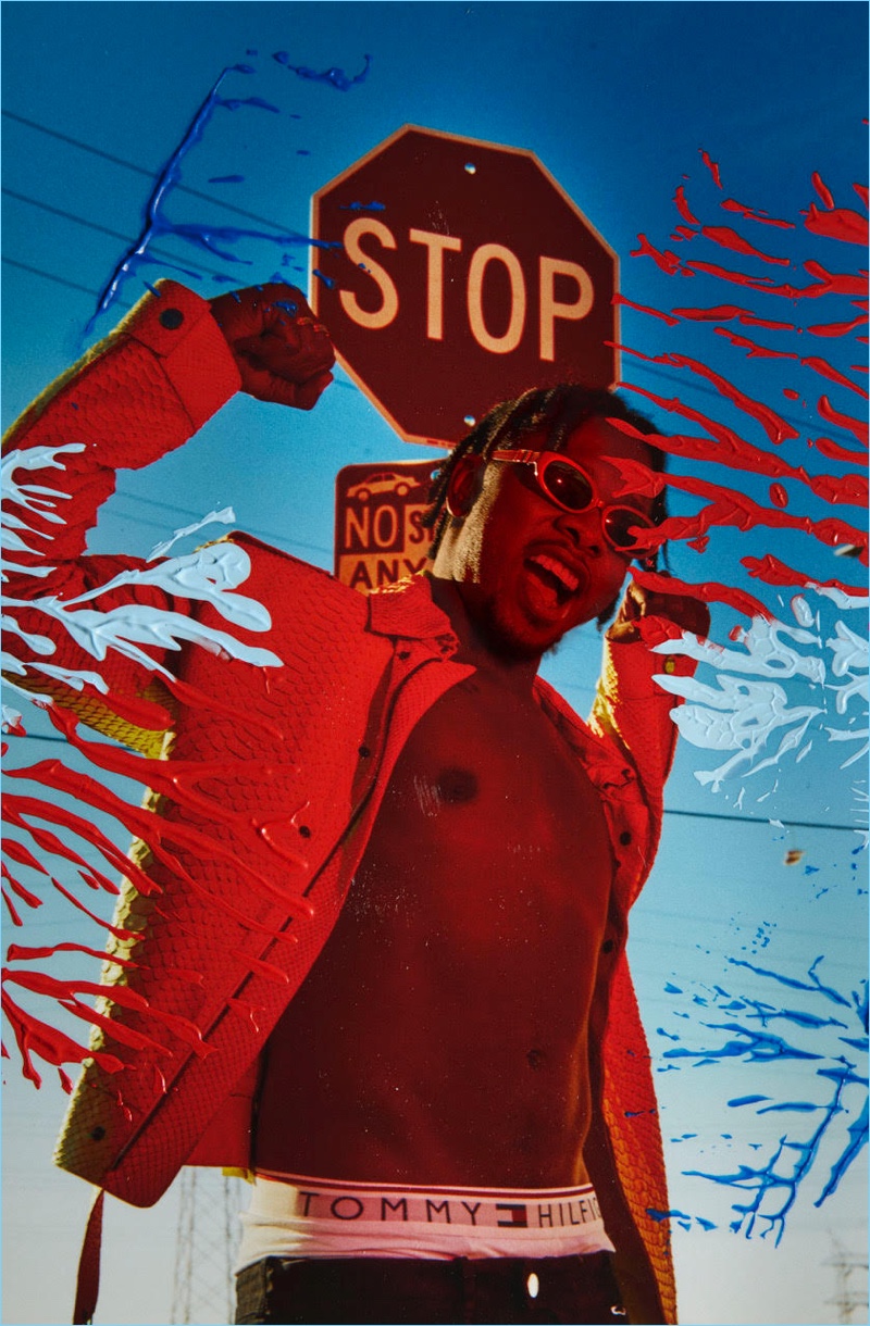 FV magazine celebrates African culture with its Skrrt issue. Runtown stars in a cover story lensed by Hunter & Gatti. Stylist Ugo Mozi outfits the Nigerian rapper for the feature. Meanwhile, Hunter & Gatti offer the perfect finishing touch to the outing by painting over the final images. Posing for gritty photos, Runtown wears a designer wardrobe. Mozi pulls together a selection of brands, which includes Dolce & Gabbana and Versace.