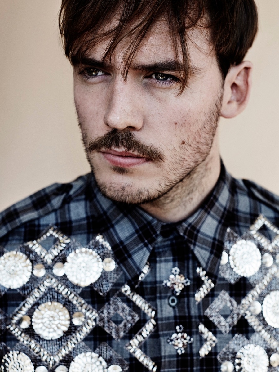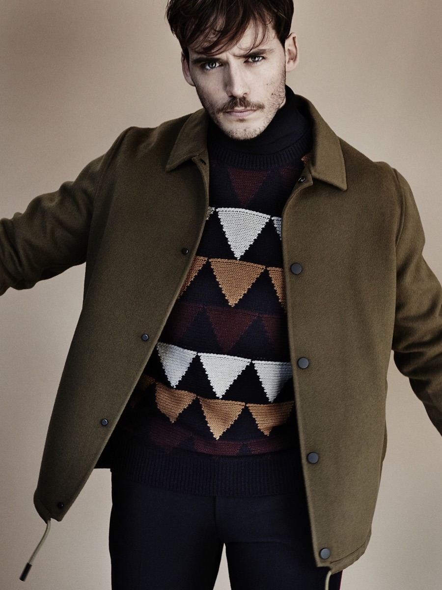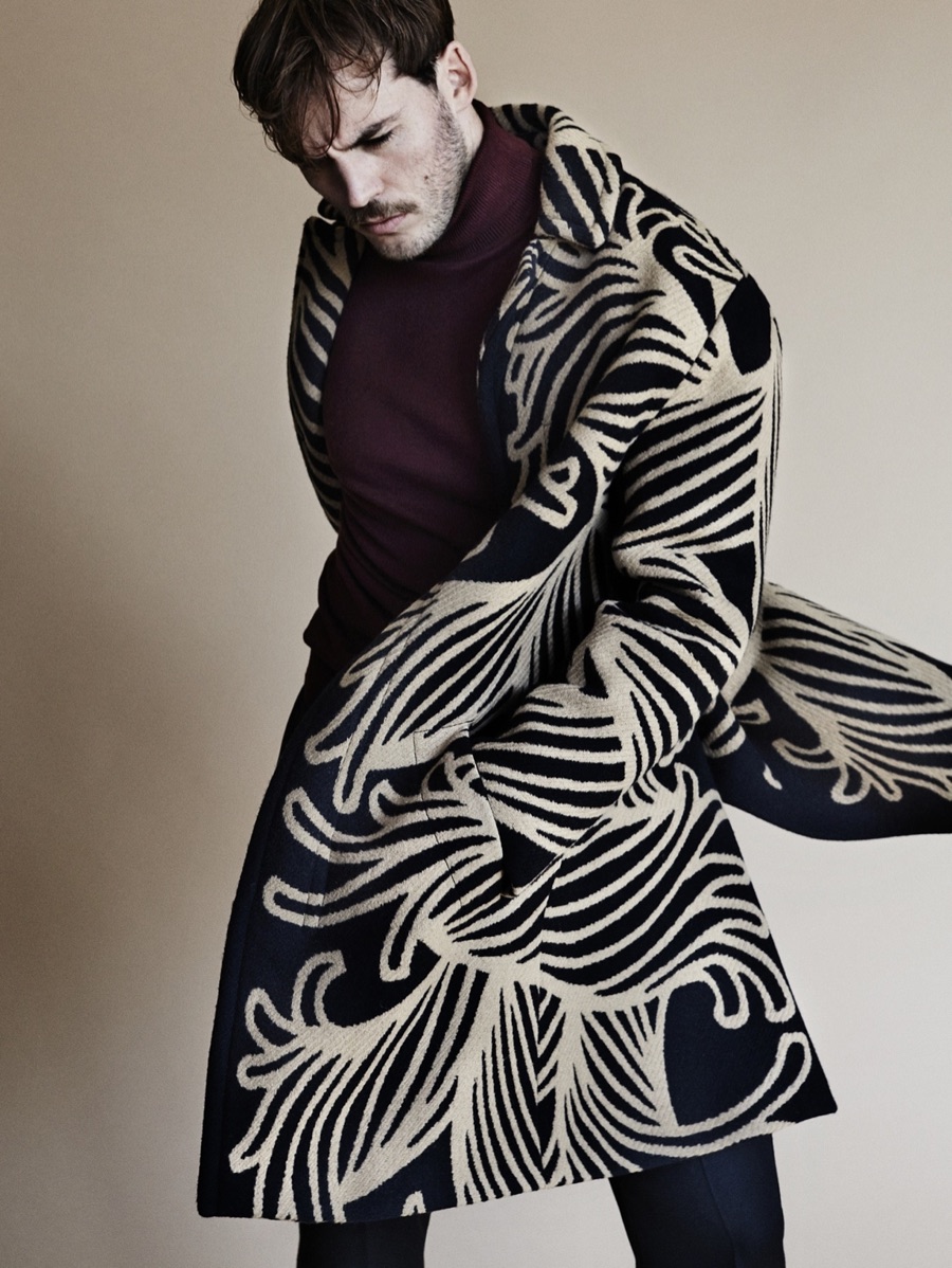 Sam Claflin receives quite the fashion makeover for The Observer. Photographed by Alex Bramall, The Hunger Games: Mockingjay Part 2 star is styled by Helen Seamons. Embracing bold prints, Claflin is captured in decadent pieces such as Louis Vuitton’s graphic coat and Dries Van Noten’s embellished shirt.