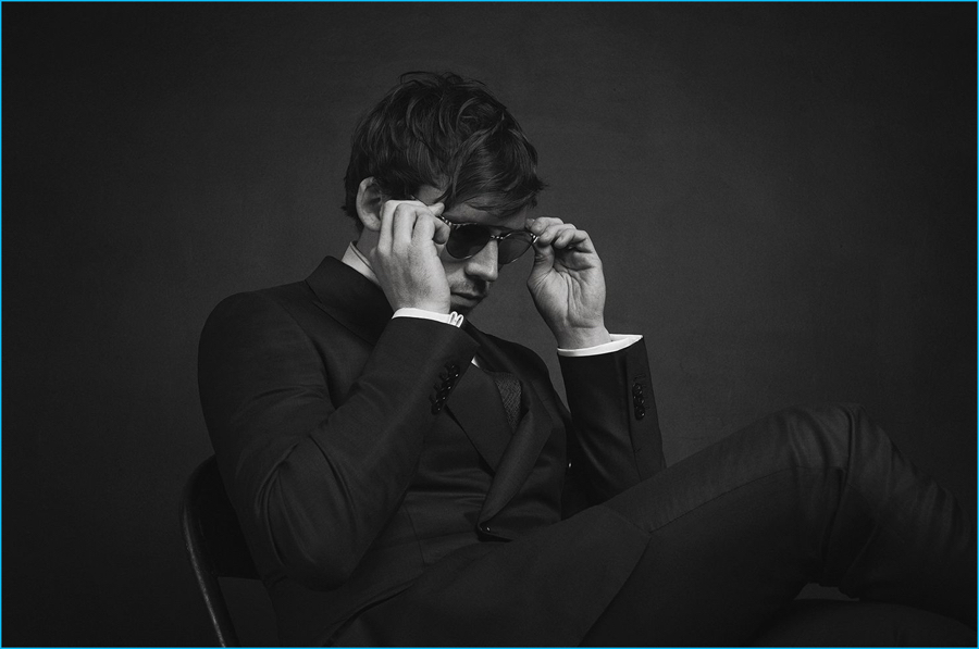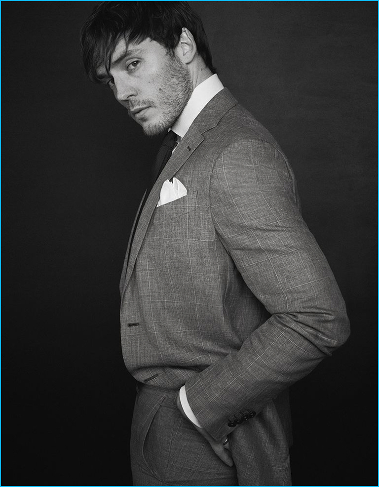 Zoo magazine celebrates its fiftieth issue with a black & white photo shoot featuring Sam Claflin. The English actor is photographed by Roger Rich for the occasion. Promoting his latest film, Me Before You, Claflin is styled by David Nolan for the German magazine. Enjoying a sartorial moment, the 29 year-old actor is pictured in a debonair wardrobe from Italian fashion house Ermenegildo Zegna.
