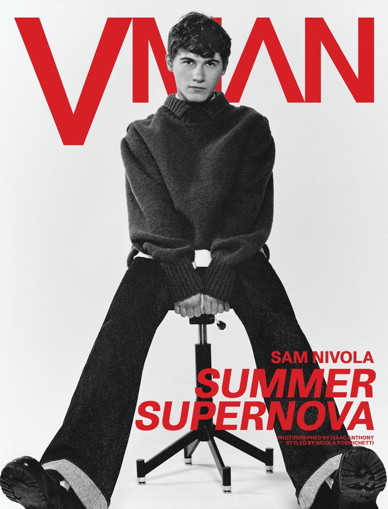 For VMAN’s latest feature, Sam Nivola steps into the spotlight, photographed by Isaac Anthony. Styled by Nicola Formichetti in Burberry’s summer collection, Nivola cycles through easy tees, a hooded sweatshirt, a sharp trench, and shirting—all with the kind of lived-in ease that mirrors his screen presence.