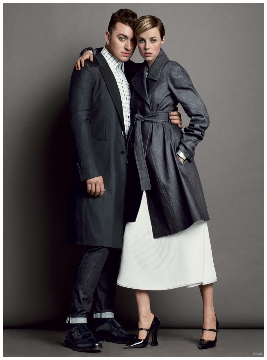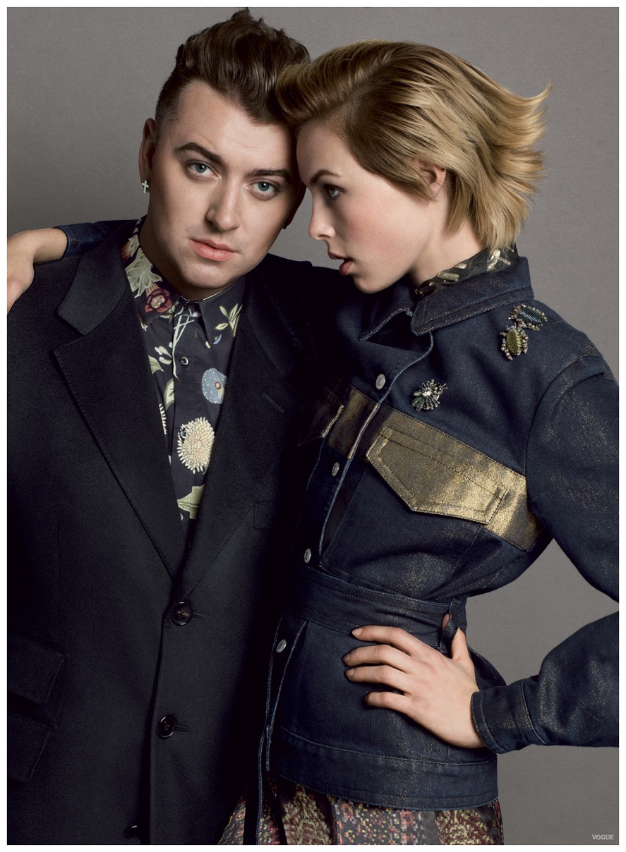 Vogue enlists British singer Sam Smith and model Edie Campbell to appear in its March 2015 issue. Photographed by Inez & Vinoodh, Smith wears spring denim looks from Prada, Tom Ford and more. Discussing his music with the magazine, the 22 year-old reveals “People think that because I’m being honest and talking about pain it’s sad, but to me it’s empowering. Talking about my deepest and darkest secrets to the world makes me feel better. It’s cathartic. And that’s a bit fucked up, if I’m honest. But it helps me.”