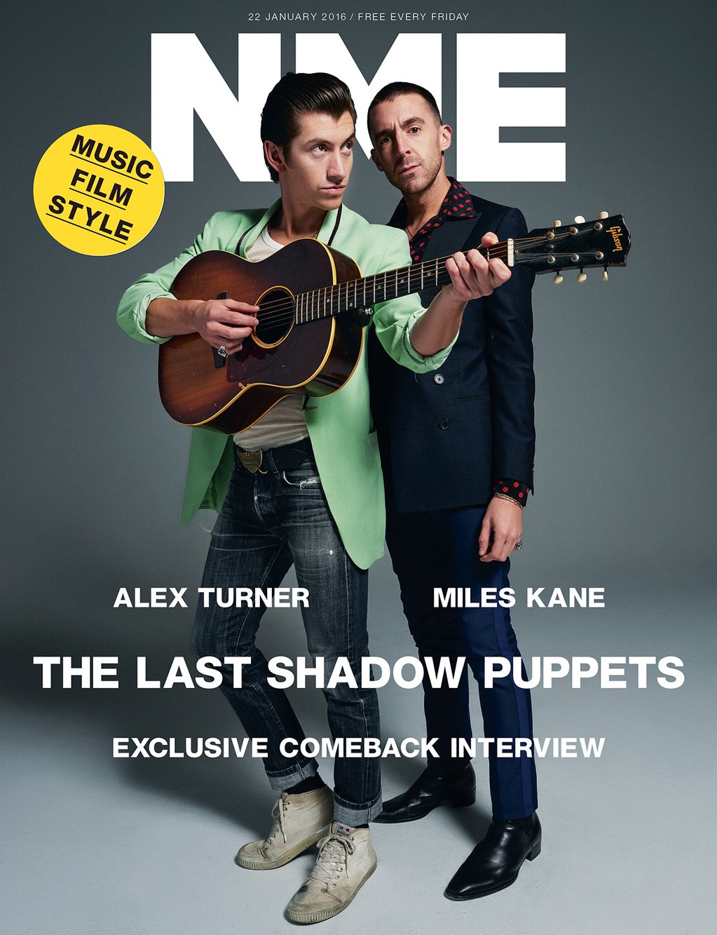 Alex Turner and Miles Kane make for quite the stylish duo as they cover NME magazine for their reunion as The Last Shadow Puppets. Turner makes a style statement in a pastel green blazer with distressed denim jeans. Meanwhile, Kane sports a double-breasted blazer with a red and black polka dot shirt. Promoting their upcoming album Everything You’ve Come to Expect, the duo connect with the magazine to dish on their sophomore project.