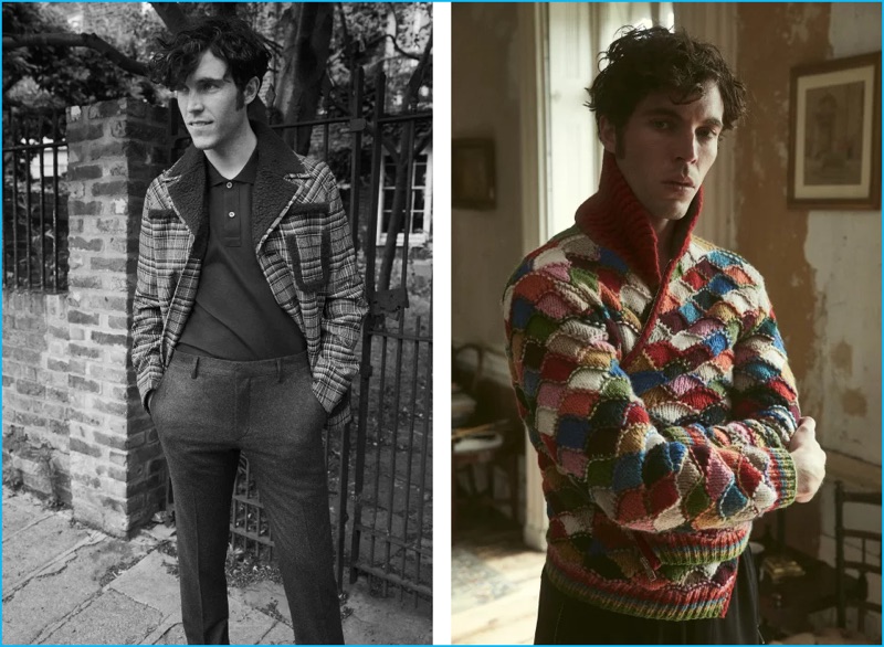 Discussing the fashionable shoot’s wardrobe, Hughes expresses, “Well, I’m a black-jeans-white-t-shirt-boots man. But I found that it pushed me to a place I don’t normally go. Well-made clothes drag you up to their standards. You can’t be a Northern slouch.” Read more on MrPorter.com.