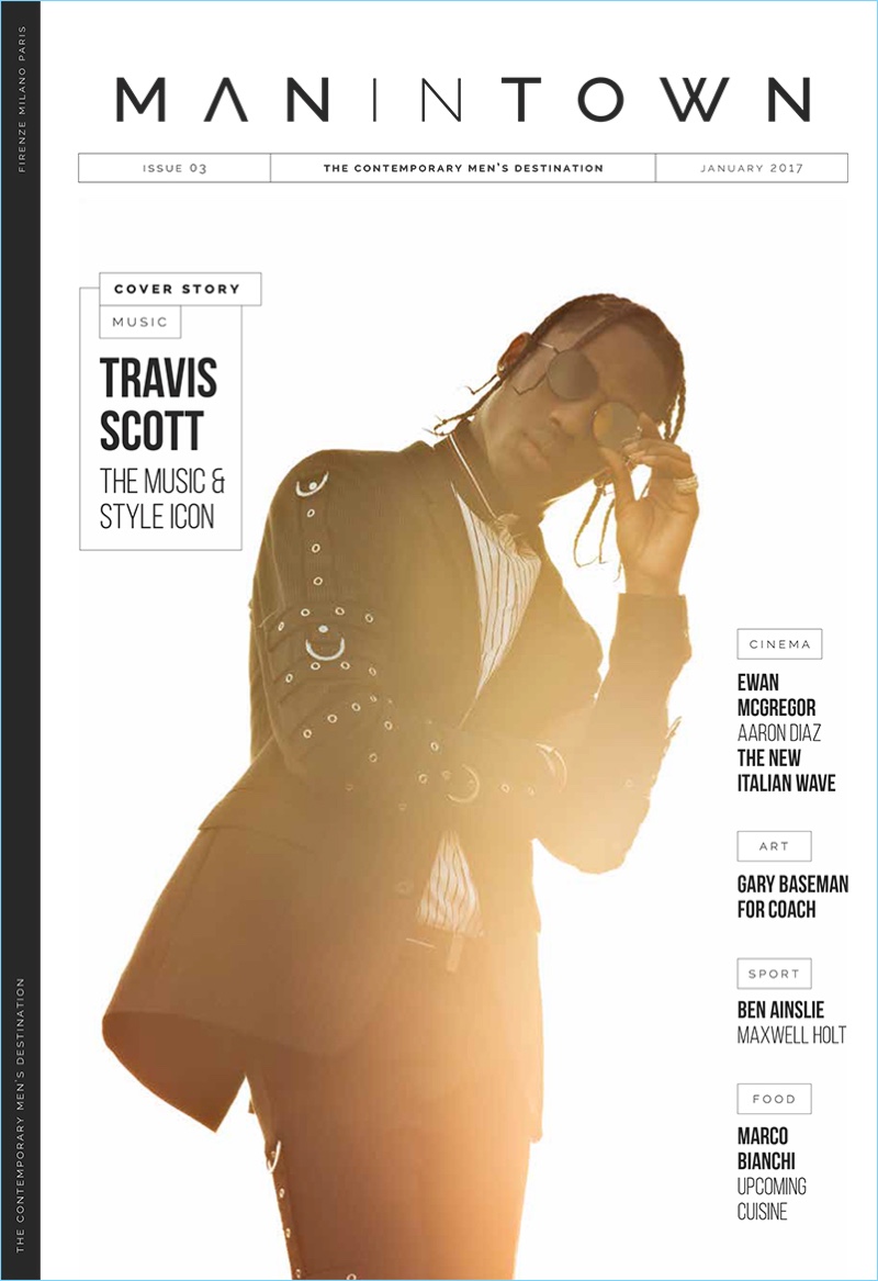 Man in Town celebrates fashion weeks in Milan and Paris with the launch of its latest issue. The magazine enlists rapper Travis Scott as its new cover star. Connecting with photographer Mike Piscitelli in Los Angeles, Scott dons a designer wardrobe, courtesy of stylist, Nicolas Klam. A sharp attitude dominates with choice pieces from brands such as Maison Margiela and Givenchy.